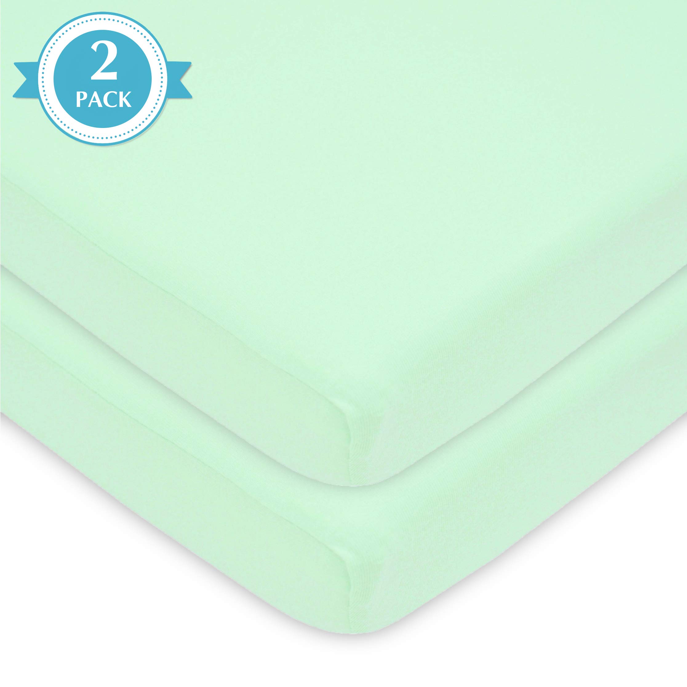 Perfect Fit & Secure Coverage: Made from 100% Cotton Jersey and measuring 24” x 38” with a depth of 5 inches, our mini crib sheets snugly fit most standard pack and play mattresses and mini crib mattresses