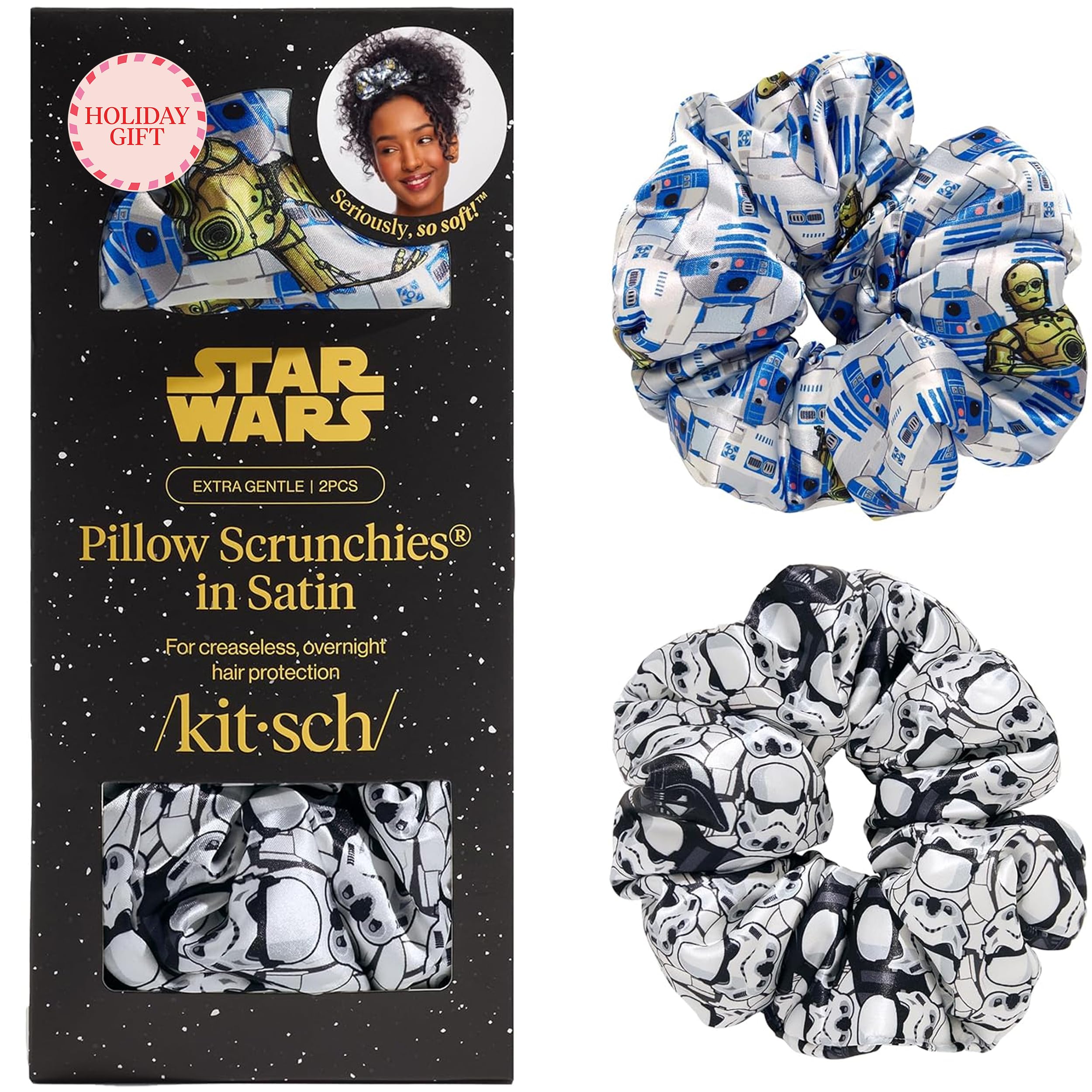LIMITED-EDITION STAR WARS DESIGNS β Show off subtle fandom flair with this 2pc scrunchie set featuring iconic Star Wars characters like R2-D2 and Stormtroopers. A playful twist on classic hair ties, these scrunchies double as collectible hair accessories for fans of all ages.