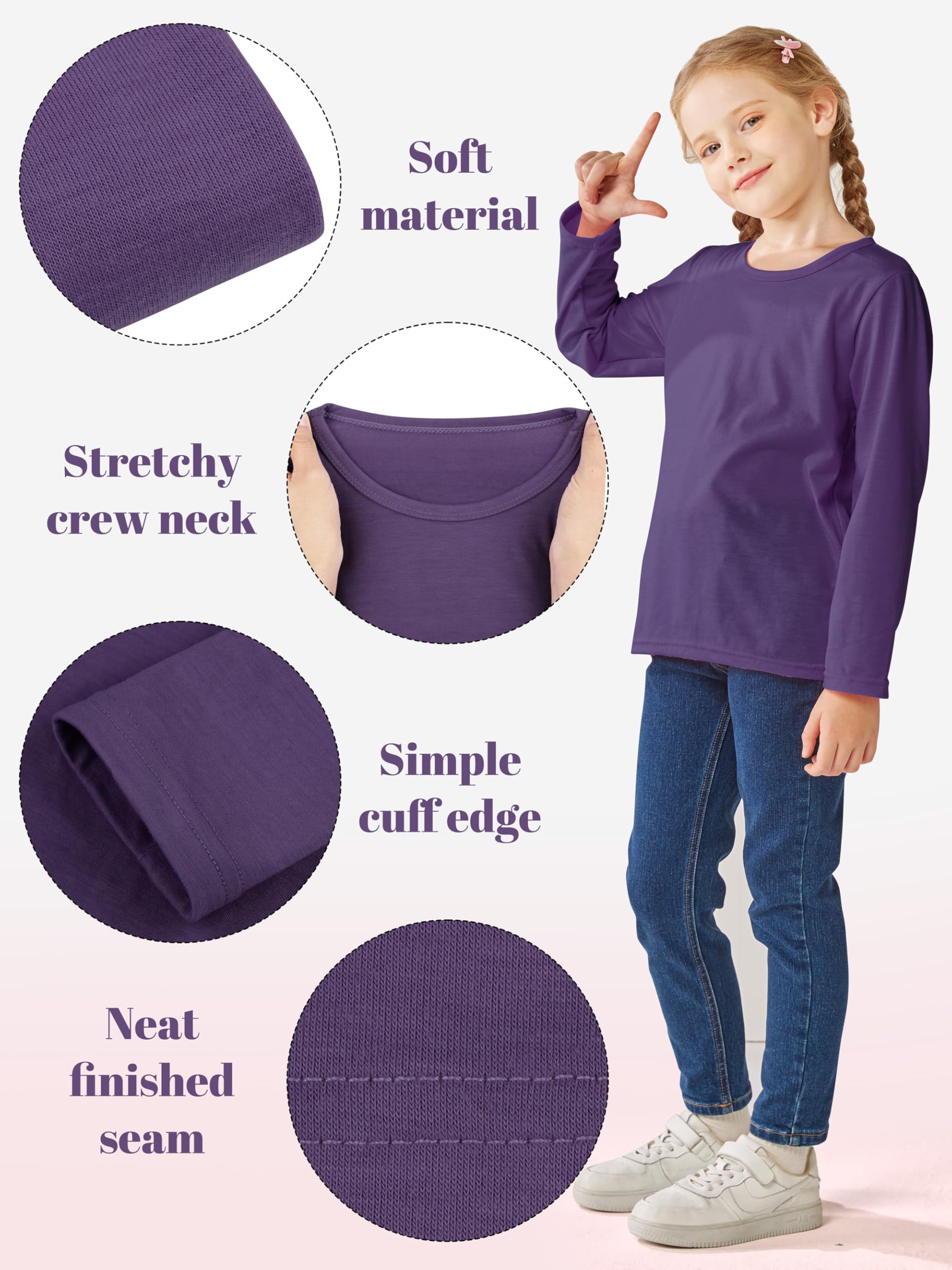 Easy to care: wearing these girls long sleeve crewneck t-shirts will make your look gorgeous and cheerful; the classic crew neck fits snugly around the base of the neck and with neat and tight stitching, our girls' t-shirts will offer great durability; hand wash or machine-wash are supported