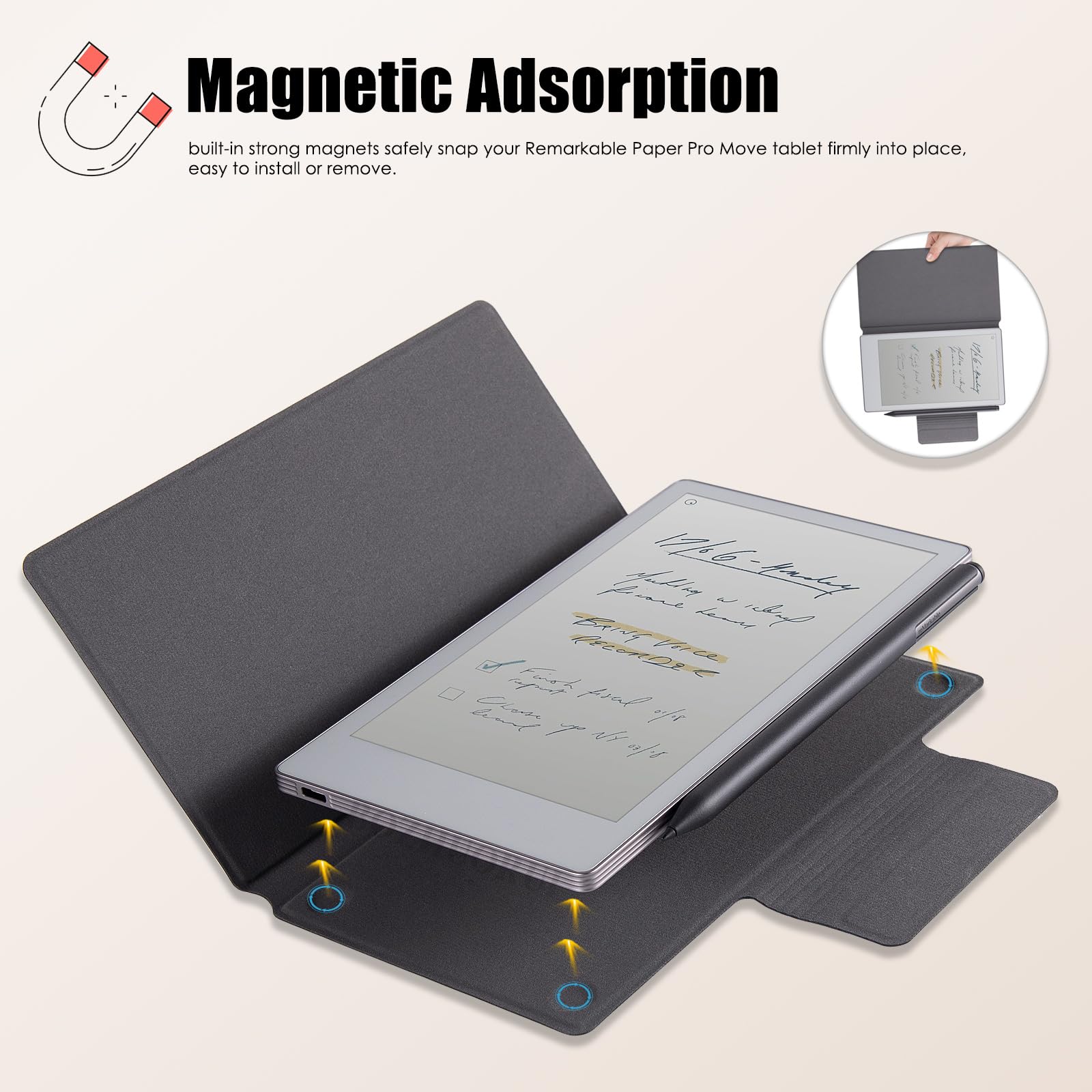 - BOZHUORUI Magnetic Case for 7.3" Remarkable Paper Pro Move Color ePaper Tablet (2025 Released). - This magnetic case is designed specifically for the 7.3" Remarkable Paper Pro Move Tablet. Strong magnetic back cover offers secure connection with the tablet,Easy to install and remove. - Slim and lightweight construction gives the case less bulk and a slimmer profile.all without adding extra bulk to your bag. - In addition, its design is very minimalist,folio book design, and folds flat for easy writing,has automatic sleep and wake function,preserving battery while also keeping notes private. - This magnetic case comes in multiple colors to choose from,making your device look more stylish,This isn’t just a cover, it is the best companion for your tablet. - What's in the box: Magnetic Case for 7.3" Remarkable Paper Pro Move * 1
