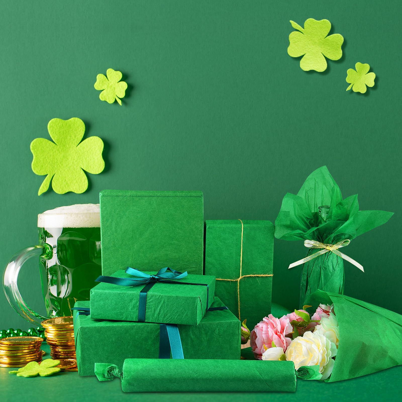 Applicable Scene: The green wrapping paper is suitable for birthdays, baby showers, weddings, Christmas, Thanksgiving, Easter, St Patrick's Day and all kinds of parties, the dark green color makes your events and gifts more eye-catching