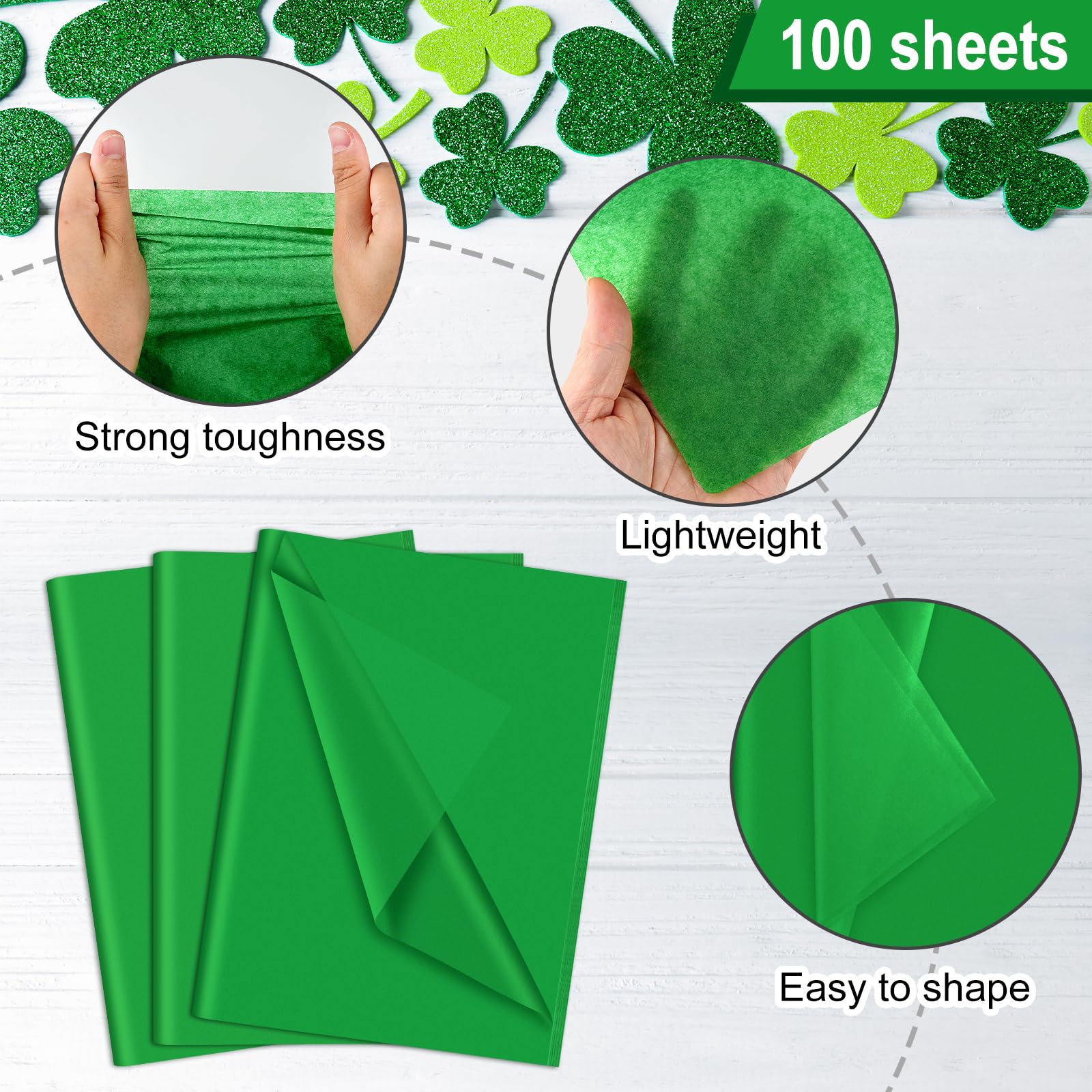 You Will Get: 100 sheets of green wrapping tissue paper bulk, enough to meet your daily and party decorations needs