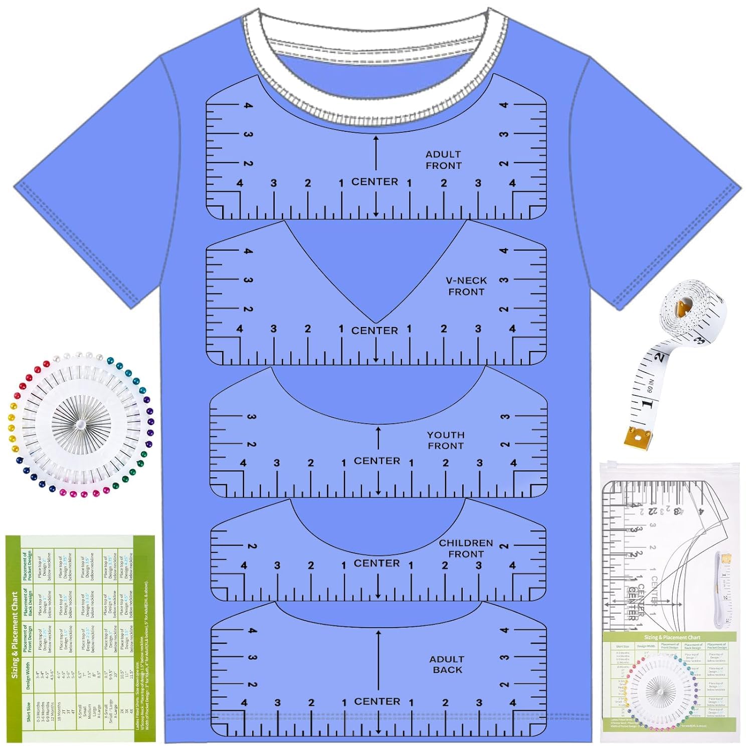 🥼【What You Get】Tietoc ORIGINAL Tshirt vinyl alignment tool set contains 5pcs all kinds size t shirt rulers, 1pcs soft measuring tape, 1pcs 40 multi-color pins for fixing & product instruction to let you know the size and placement of your design. These rules can meet the design needs of the whole family clothes. Free your imagination and enjoy DIY fun from now on!