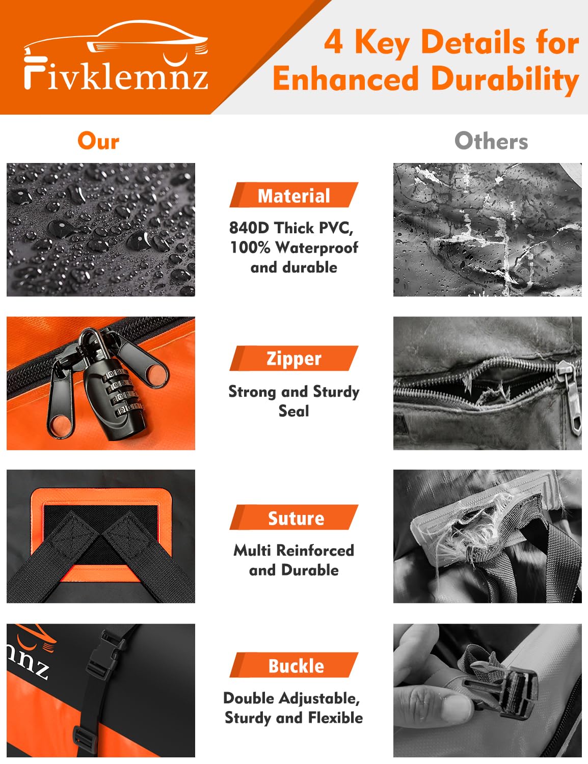 【100% Waterproof & Heavy-Duty Material】 Made with upgraded durable 840D PVC material and high-frequency welded seams, features a double-layered waterproof cover, this rooftop cargo carrier keeps your luggage dry even in heavy rain, snow, or long-distance travel. Built for road trips, camping, and family vacations.
