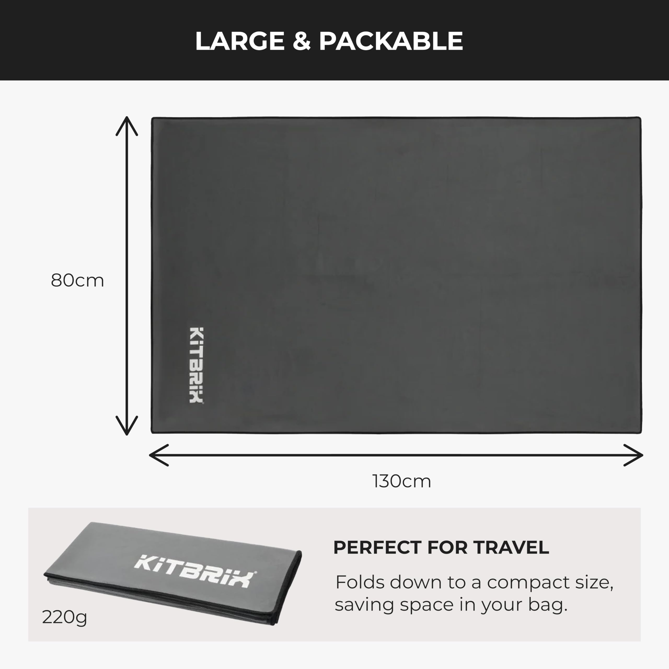 LIGHTWEIGHT & COMPACT FOR EASY TRAVEL – Weighing just 220 grams and measuring 80cm x 130cm, this travel towel folds down effortlessly, saving space in your luggage, gym bag, or backpack. A gym essentials must-have for athletes and outdoor enthusiasts.