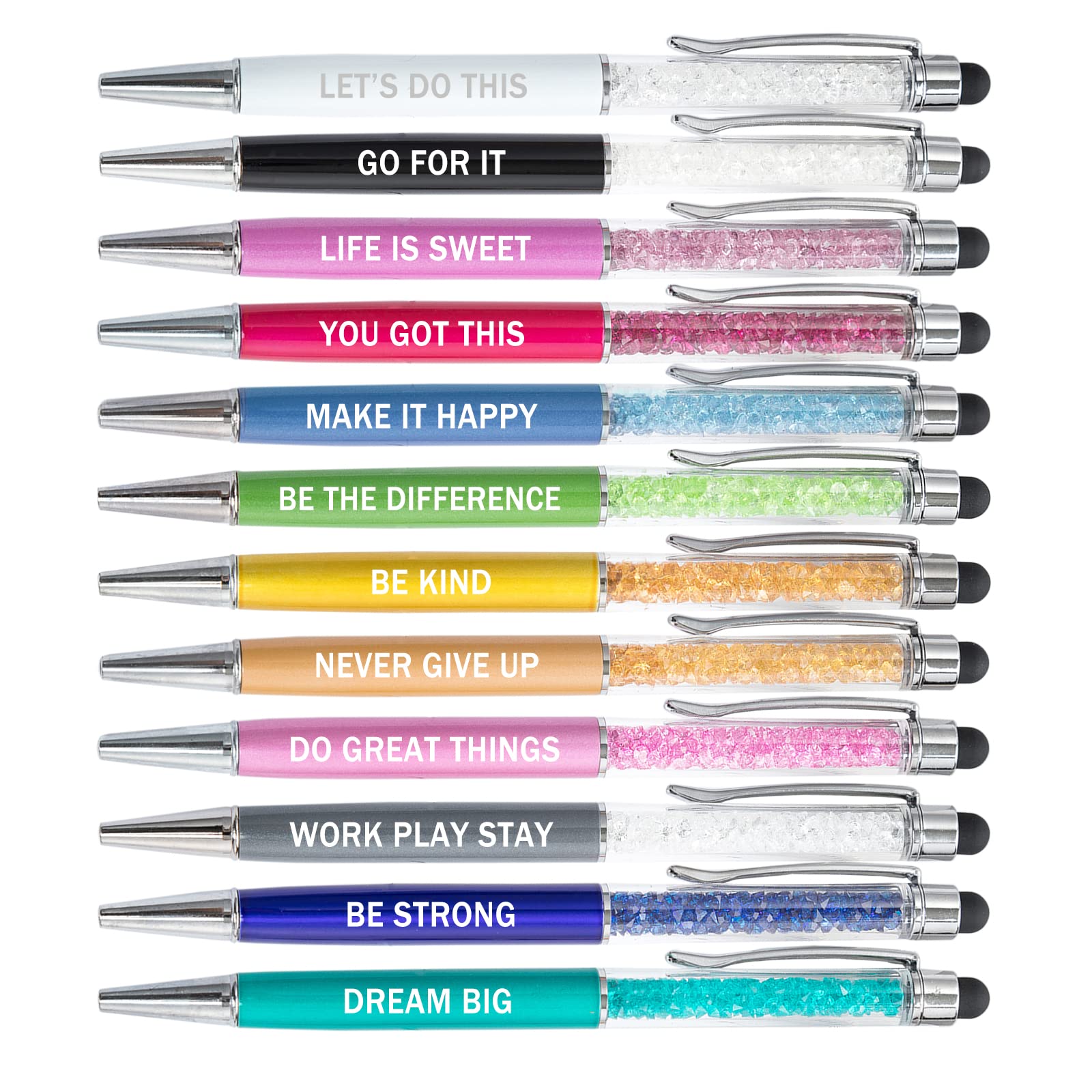 ❤【Practical Design】Stay positive and productive with these personalized inspirational motivational crystal pens. Use ballpoint pen stylus tip to take notes on paper, phone, or tablet screens without the need for charging. The laser-engraved letters on the demotivational pen set last longer than printed ones