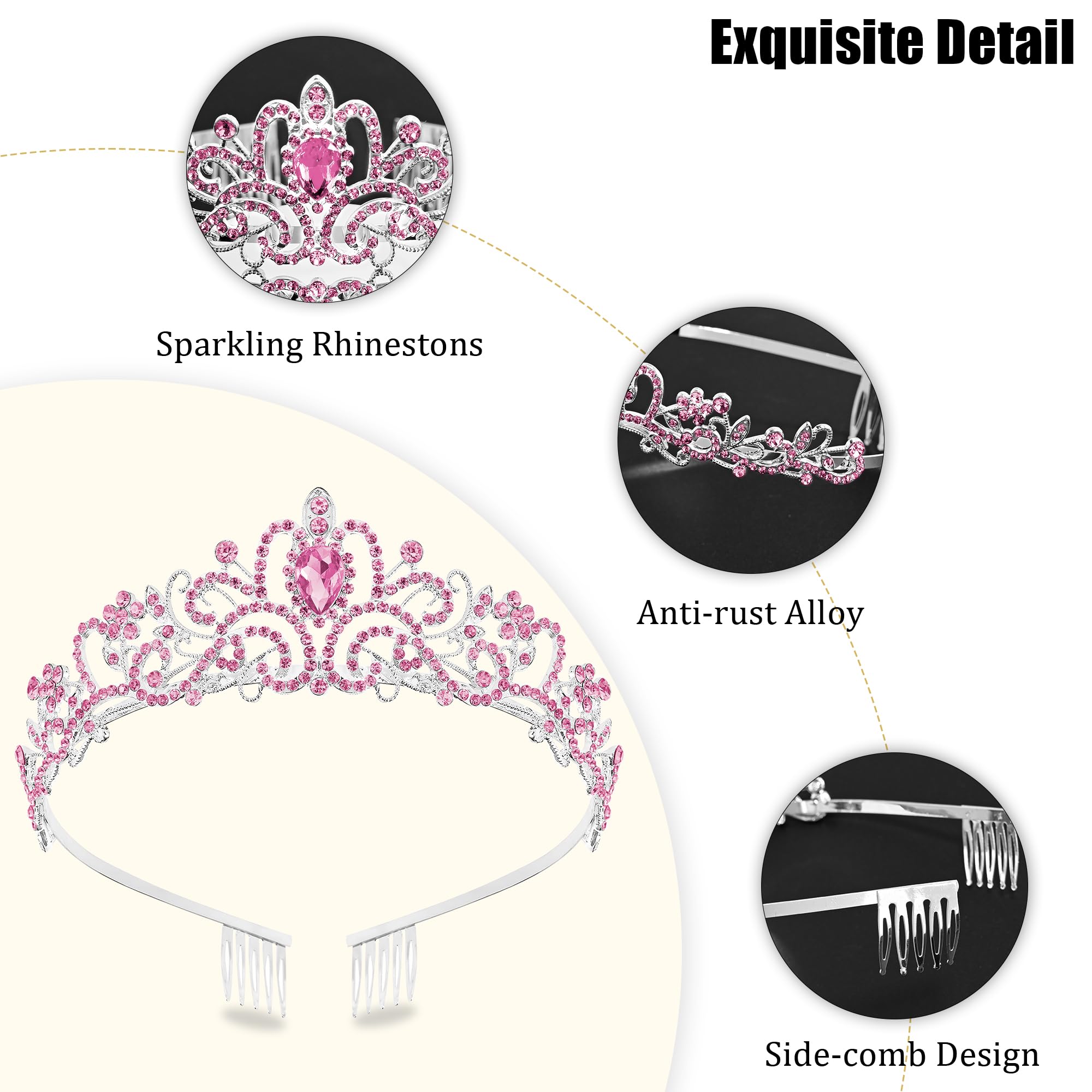 ♕[Shine Like A Diamond] Pink tiaras for women are finely crafted, sparkling rhinestones shining more brilliantly in premium alloy's company. Classic style and design have a stylish and timeless appeal, bringing elegance and glamor.