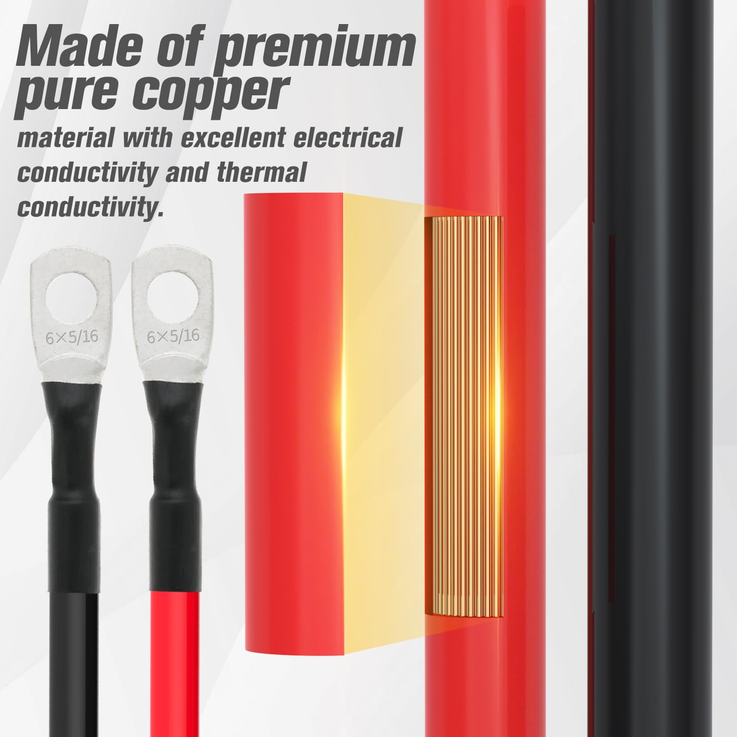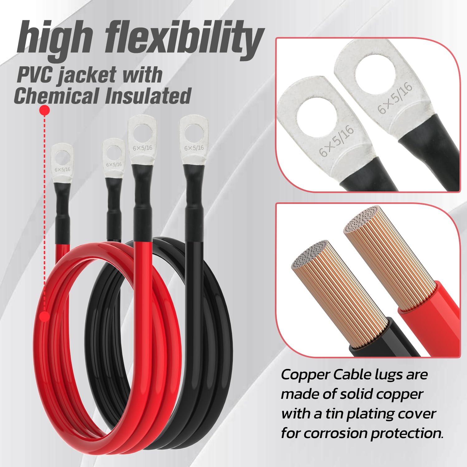 6 AWG Battery Cable 6AWG Gauge Battery Inverter Cables for Automotive Solar Marine Boat RV Car Motorcycle (6 AWG, 3FT, 5/16")