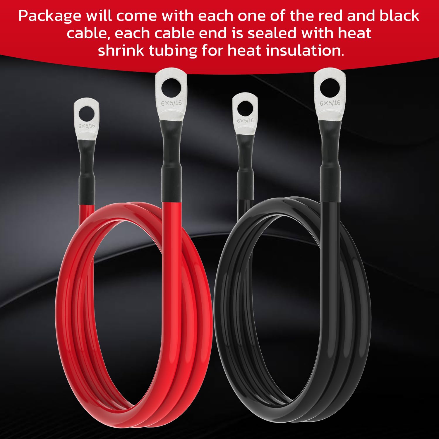 Package will come with each one of the red and black cable, each cable end is sealed with heat shrink tubing for heat insulation