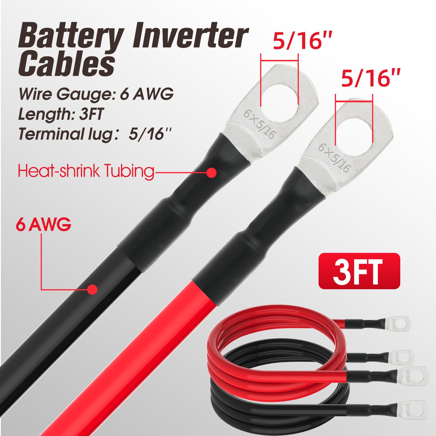 Wire Gauge: 6 AWG; Length: 3FT; Terminal lugs: 5/16"