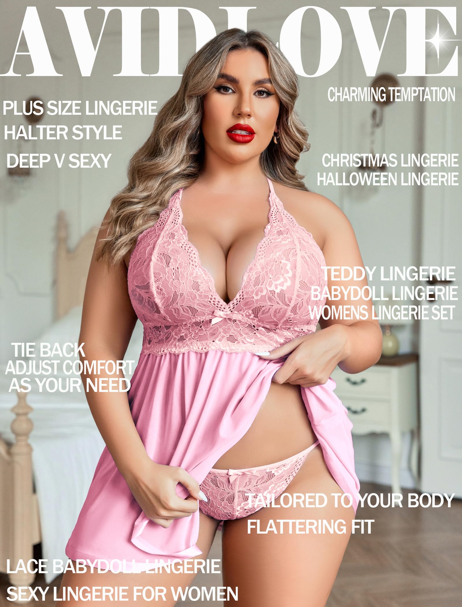 Style: plus size babydoll for women.plus size women lace lingerie set, v neck chemise, halter lingerie plus size, sexy lingerie for women plus size, lace mesh lingerie sleepwear nightie, see thru lingerie for women, plus size lingerie for women for sex.