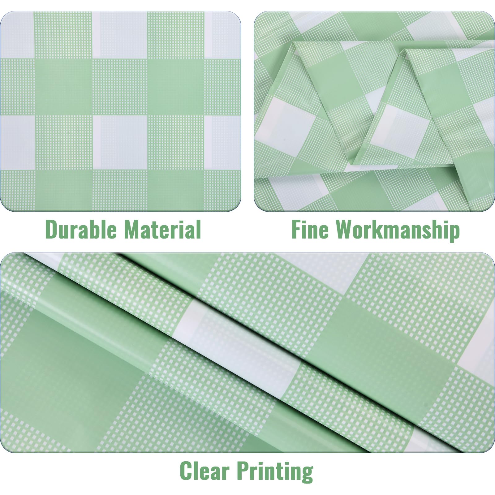 Proper size: The sage green checkered tablecovers measures approximately 54 x 108 inch which perfect for most standard picnic tables and the colors of a sage green themed party