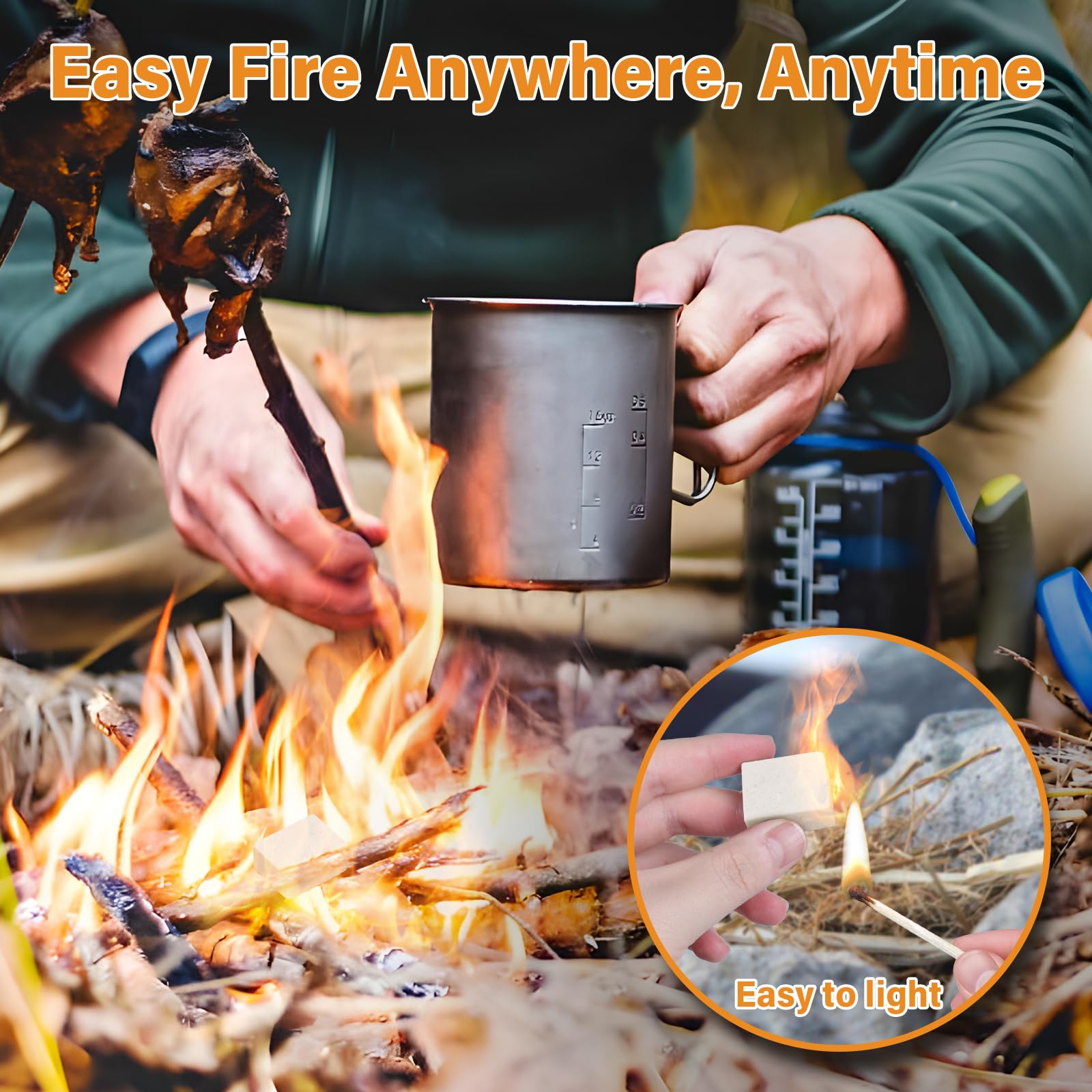 STOCK UP & SAVE: Start with our 32-piece beginner pack or upgrade to 64, 128, or 160-piece options. Larger sizes offer longer burning times, better ignition, and more value—ensuring you're ready for any adventure