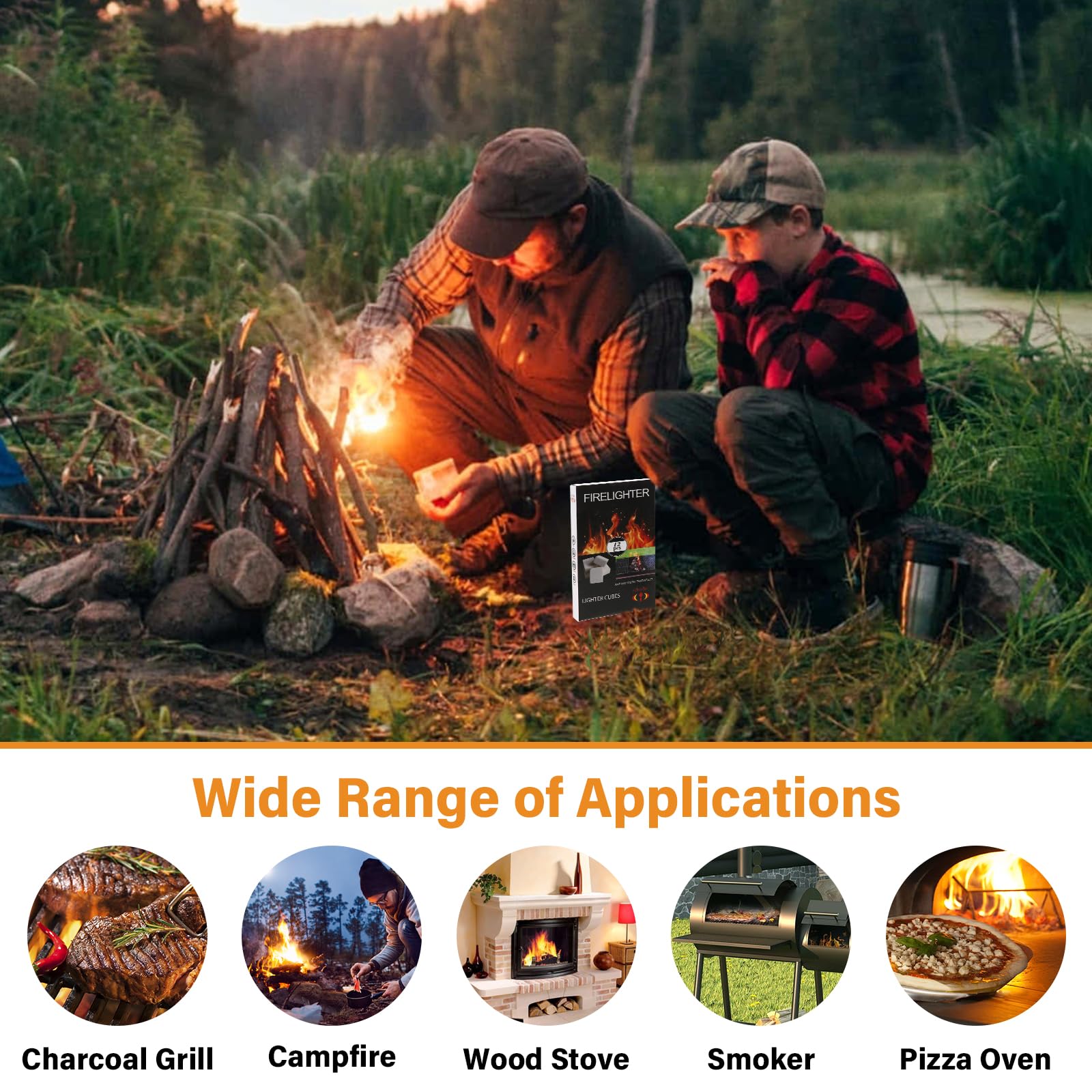 VERSATILE APPLICATIONS: These premium fire starter squares are ideal for multiple uses: BBQ grills, fire pits, fireplaces, campfires, bonfires, chimney lighters, wood stoves, smokers, pizza ovens and more—suitable for both indoor and outdoor use
