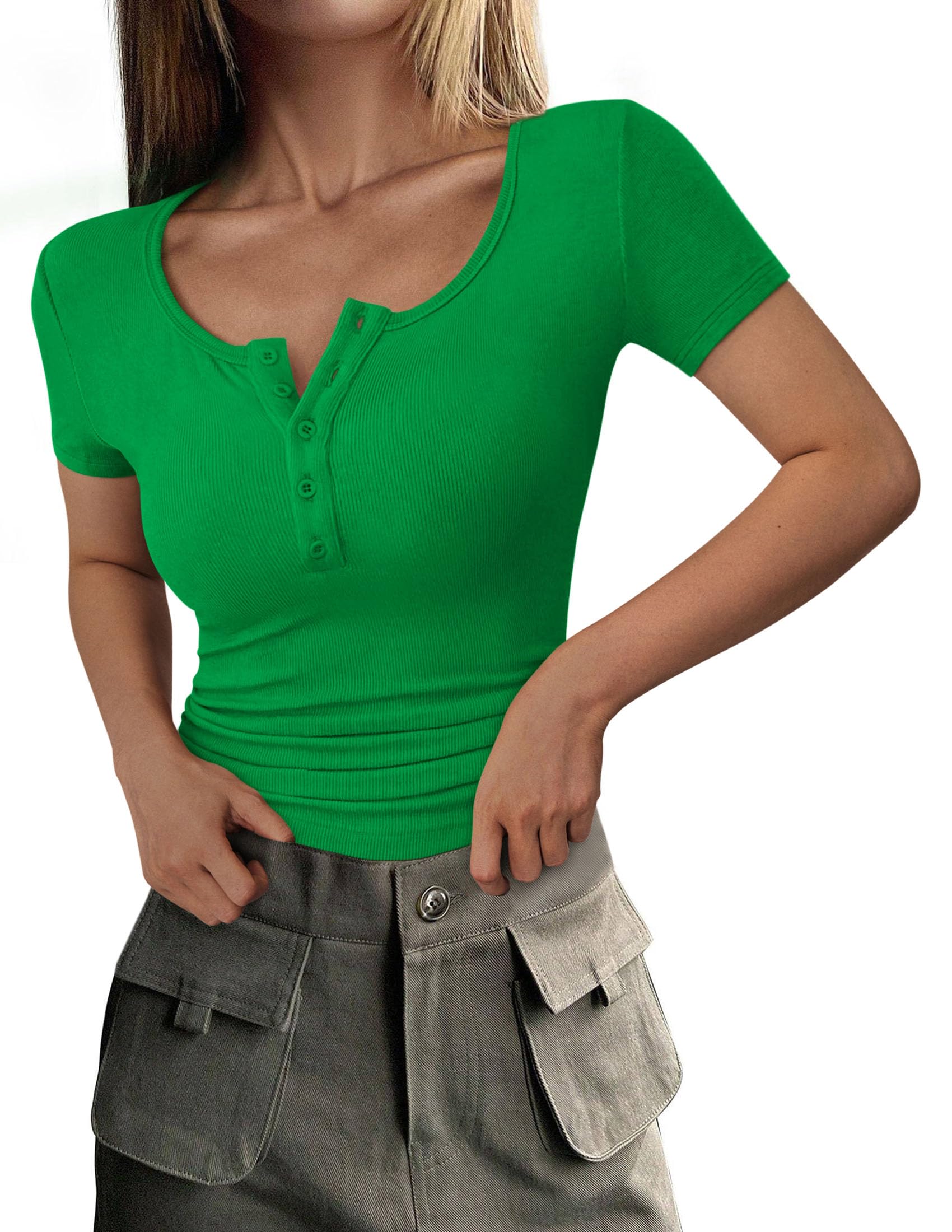 FEATURES: Short Sleeve Womens Tee Shirt; Henley Shirts for Women; Button Up Summer Tops; Fitted Tops For Women; Ribbed Casual Tops For Women; Solid Color Ladies Tops And Blouses; Going Out Tops For Women; Spring Women's T-Shirts; Basic Tops For Woman
