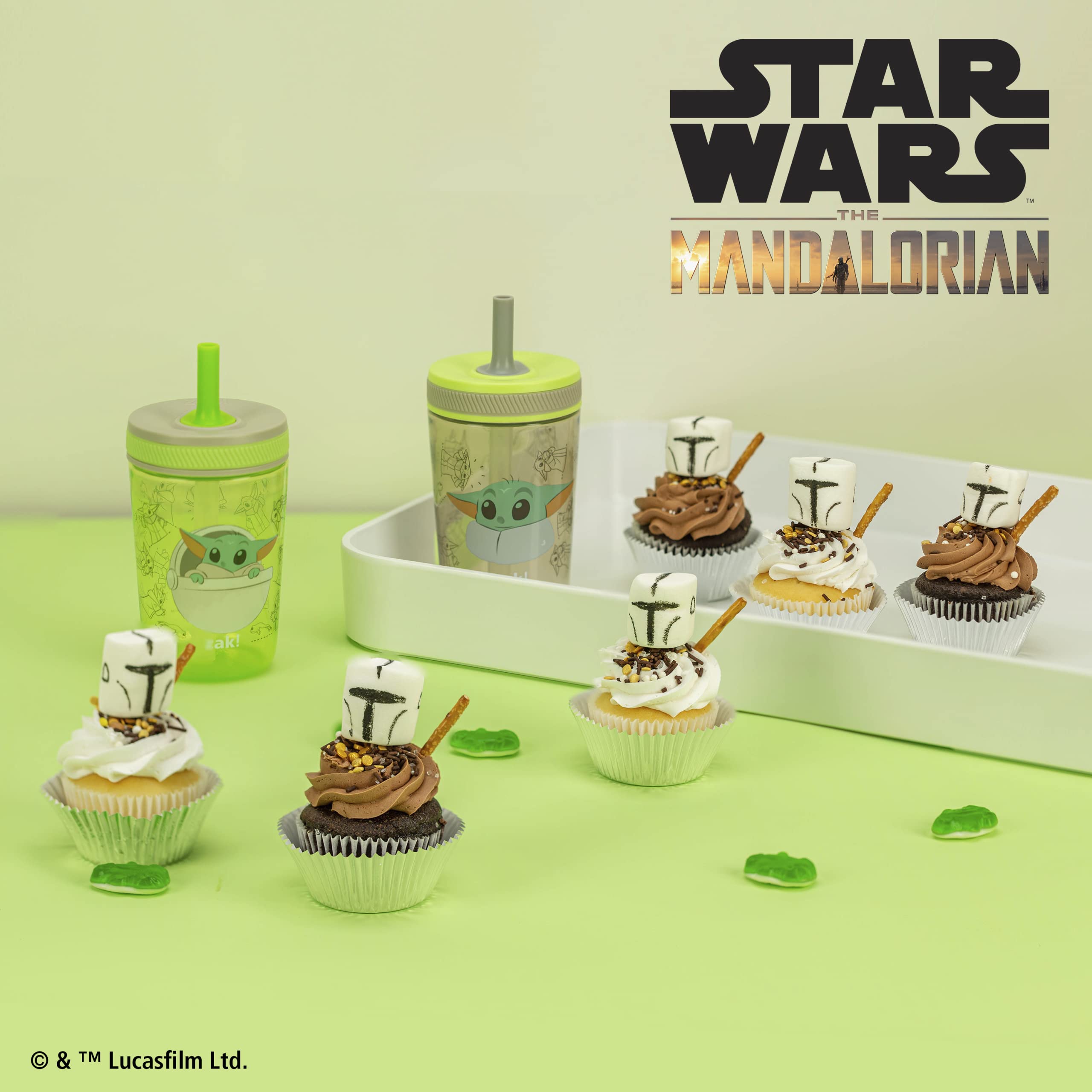 SIZE: The set contains two Baby Yoda (Grogu) tumblers that are 3.16 inches in diameter and 6.67 inches tall. They have a capacity of 15 ounces.
