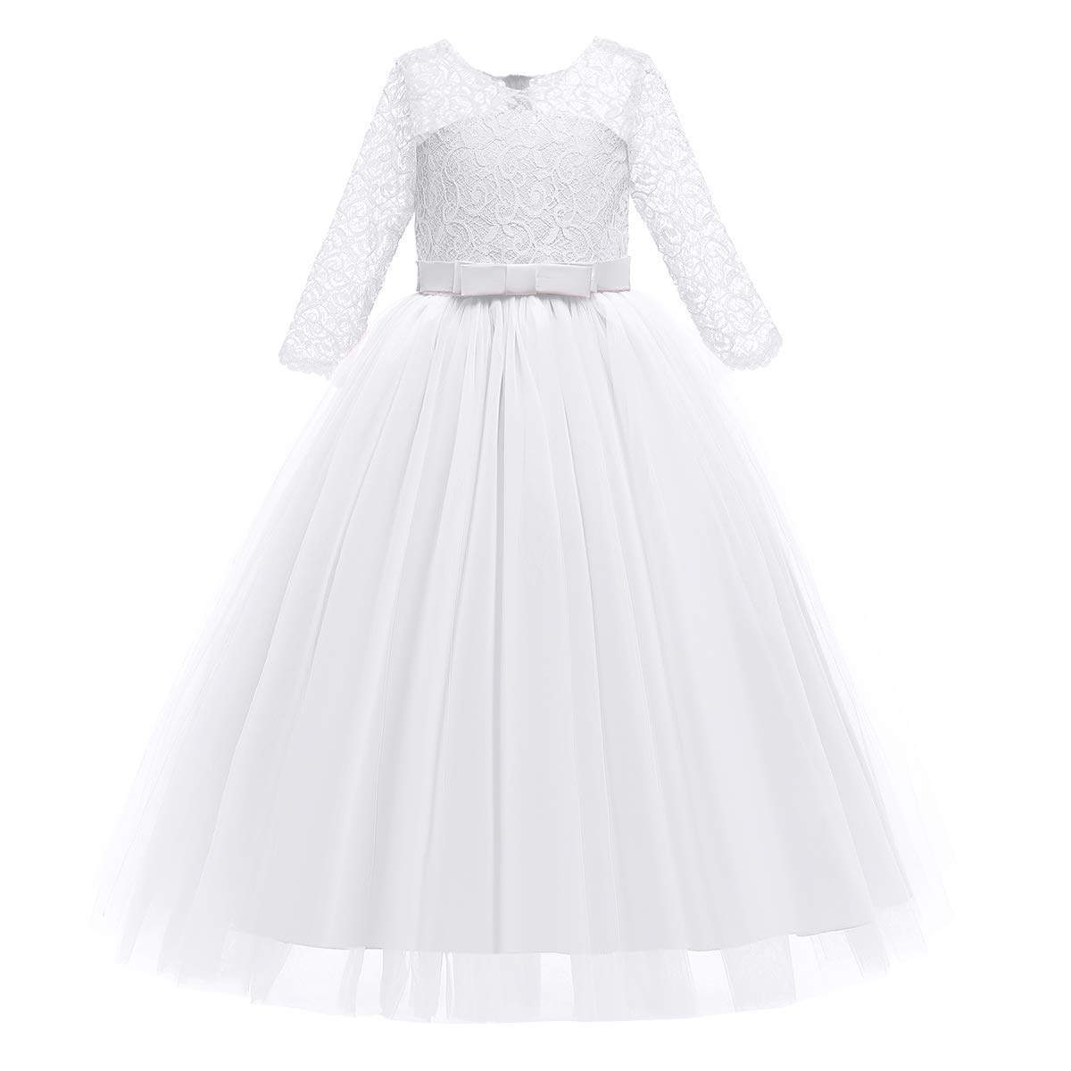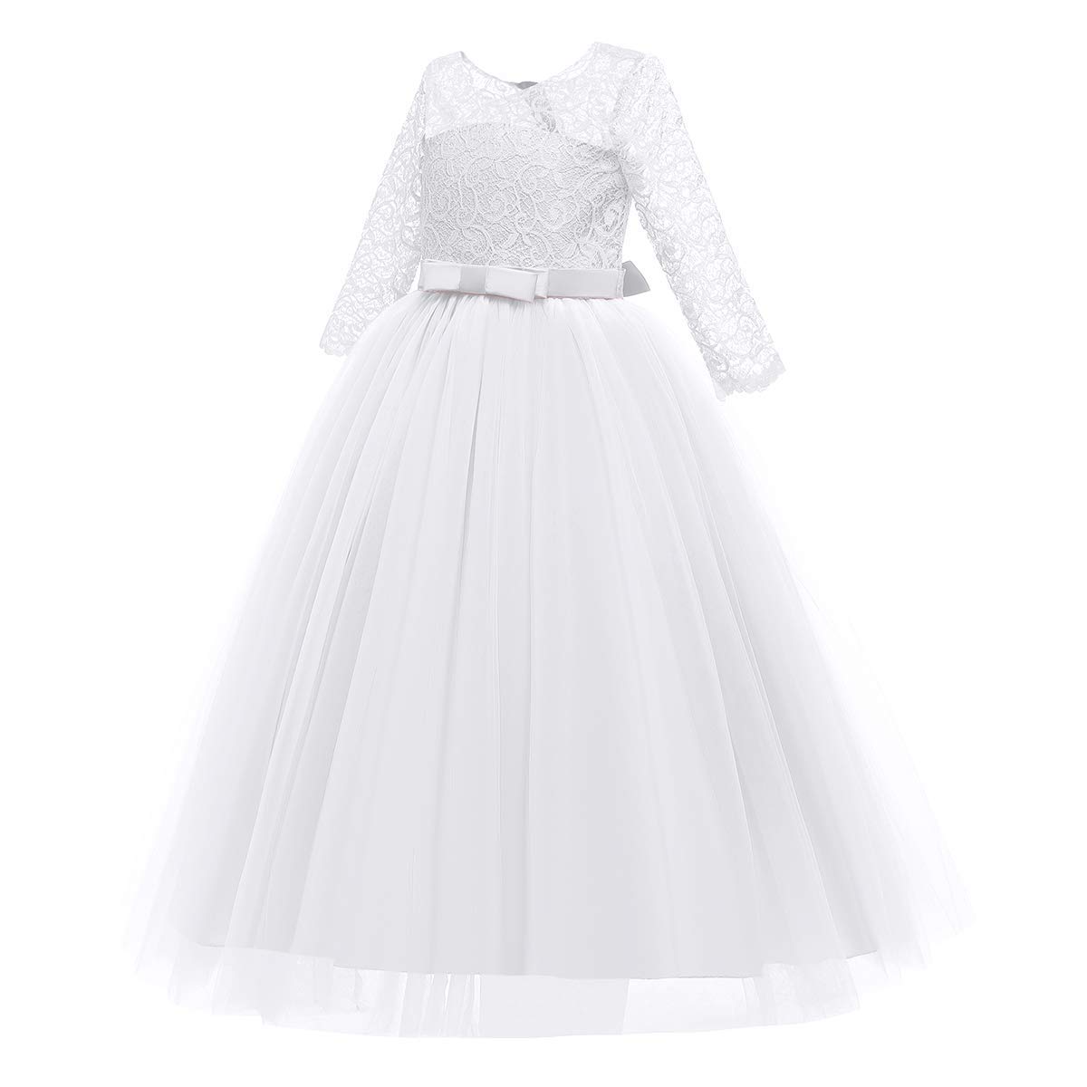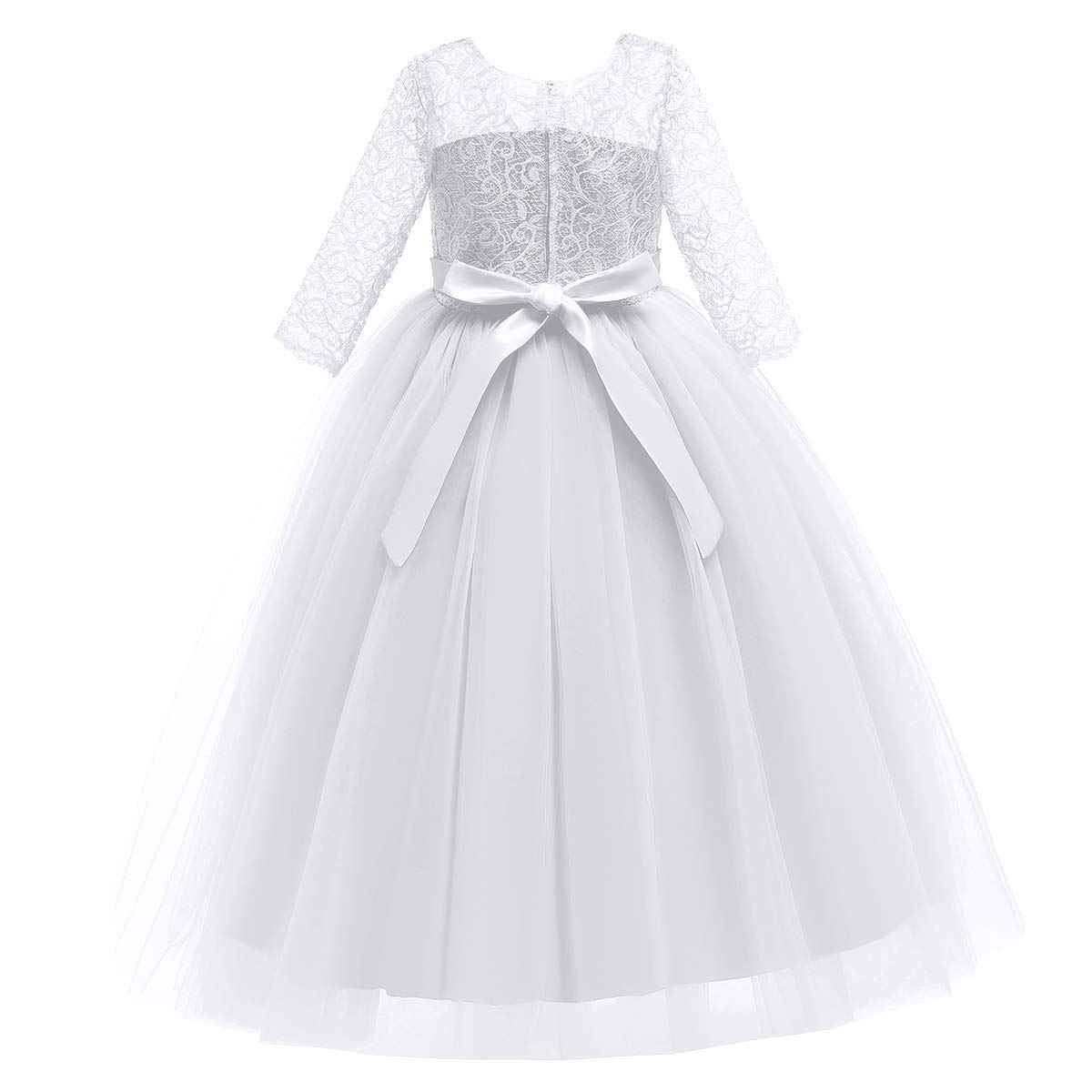 Size: Flower girls lace long maxi dress available for 2-14 Years child girl.Please refer to our size information in the below product description or the left picture for Detail Size Chart before ordering. Junior bridesmaid dresses for girls. Tulle lace layered dress with delicate flower and bow make your sweet princess to be the most graceful and shining girl in the crowd. Beautiful design features a chic style for your young baby and make your little fairy look so distinctive.
