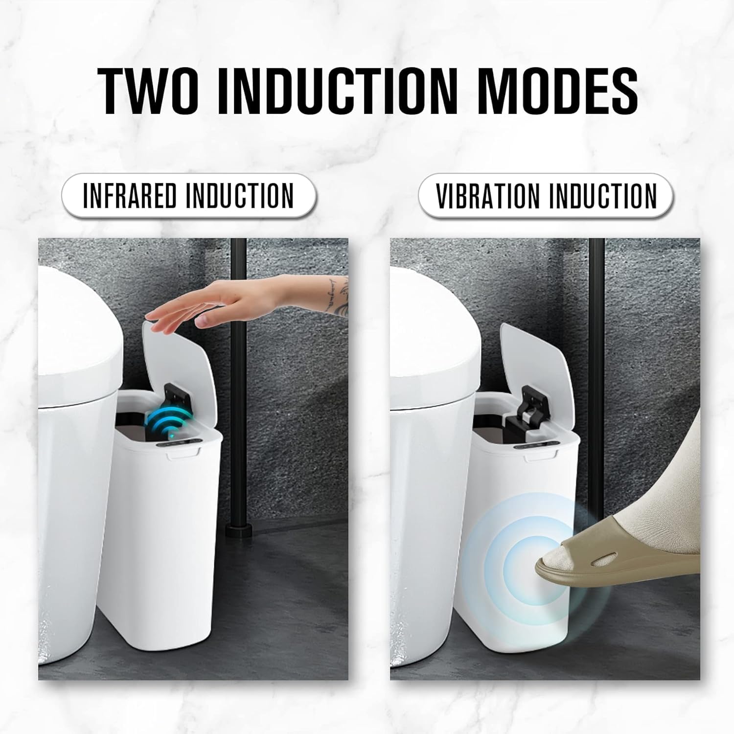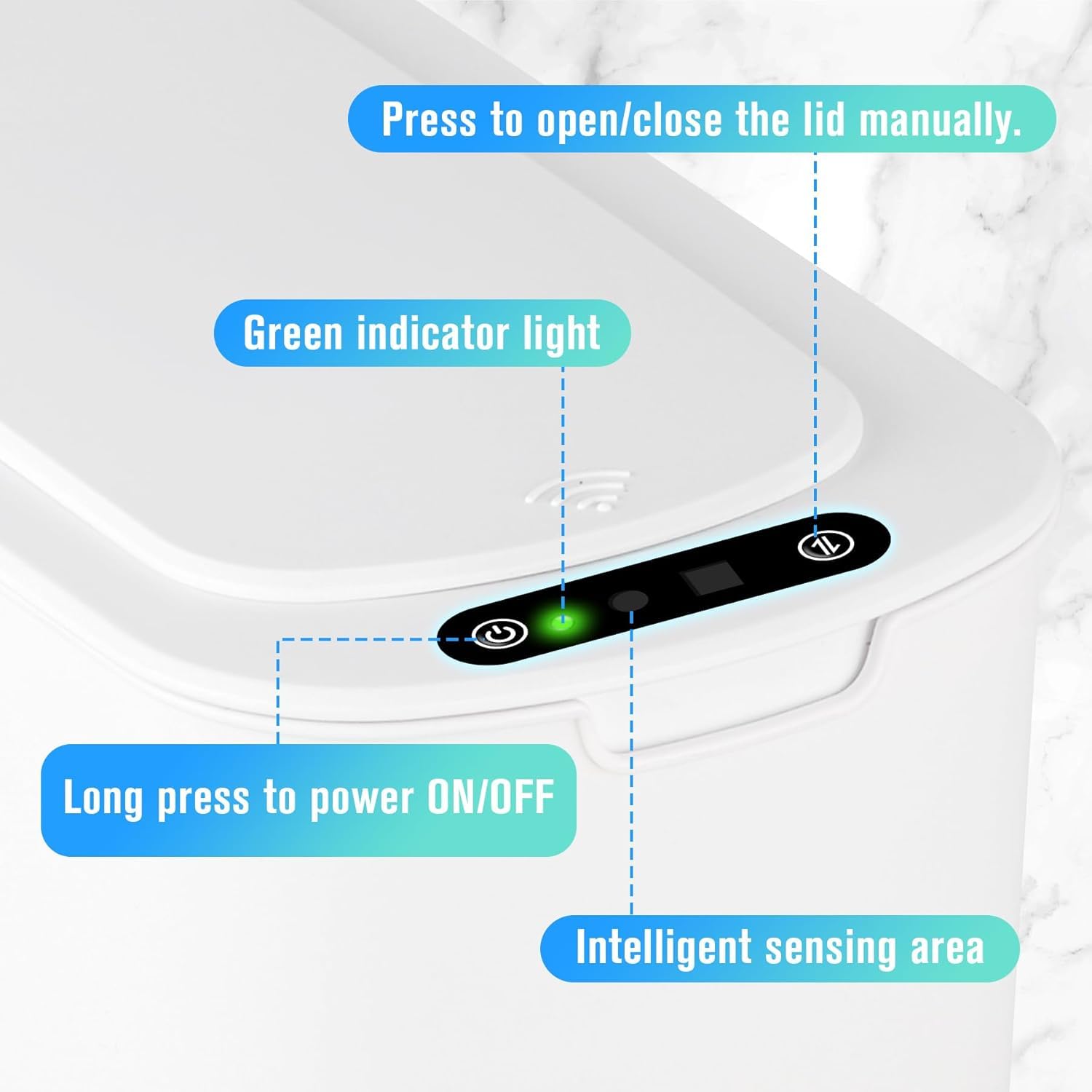 Designed for Narrow Spaces: Our smart trash can has a slim shape that makes it a fit in a bathroom or wherever space is tight. Are you still annoyed that the narrow space in the room is being wasted? Use it to improve your space utilization