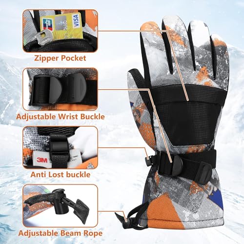 【Waterproof Ski Gloves】: The insert waterproof PU fabric can prevent snow water permeating into skiing gloves. You will enjoy with it for any outdoor sports like snowing or rainning.Windproof Kids Gloves: The gloves make of composite five-Layer fabric prevents cold wind and snows outside.