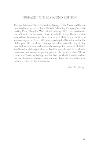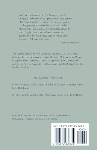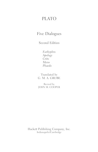 The second edition of Five Dialogues presents G. M. A. Grube's distinguished translations, as revised by John Cooper for Plato, Complete Works. A number of new or expanded footnotes are also included along with an updated bibliography.