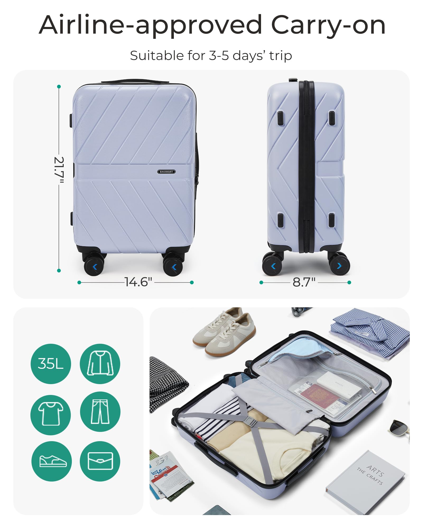 Room For More: BAGSMART suitcase is designed to fit more into your trip. The 2 main compartments of luggage with compression cross straps store all your clothes and belongings and keep clothing wrinkle-free, items neatly in place. Individual built-in small pocket is for small items. Generously sized, thoughtfully placed designs maximize every inch of storage, meaning you can get more out of every trip with your carry-on.