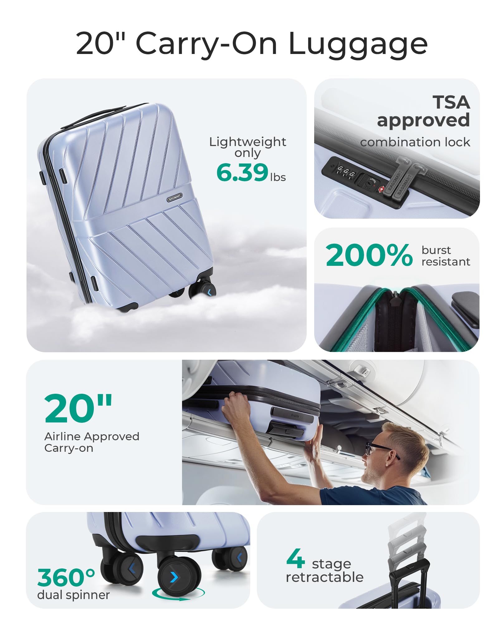 Lightweight Yet Durable - The outer shell made of full PC which is an extremely strong yet lightweight and scratch-resistant material that makes suitcase looks like new year after year. The sleek good looks make this an excellent choice for business travelers and those who like to travel in style.