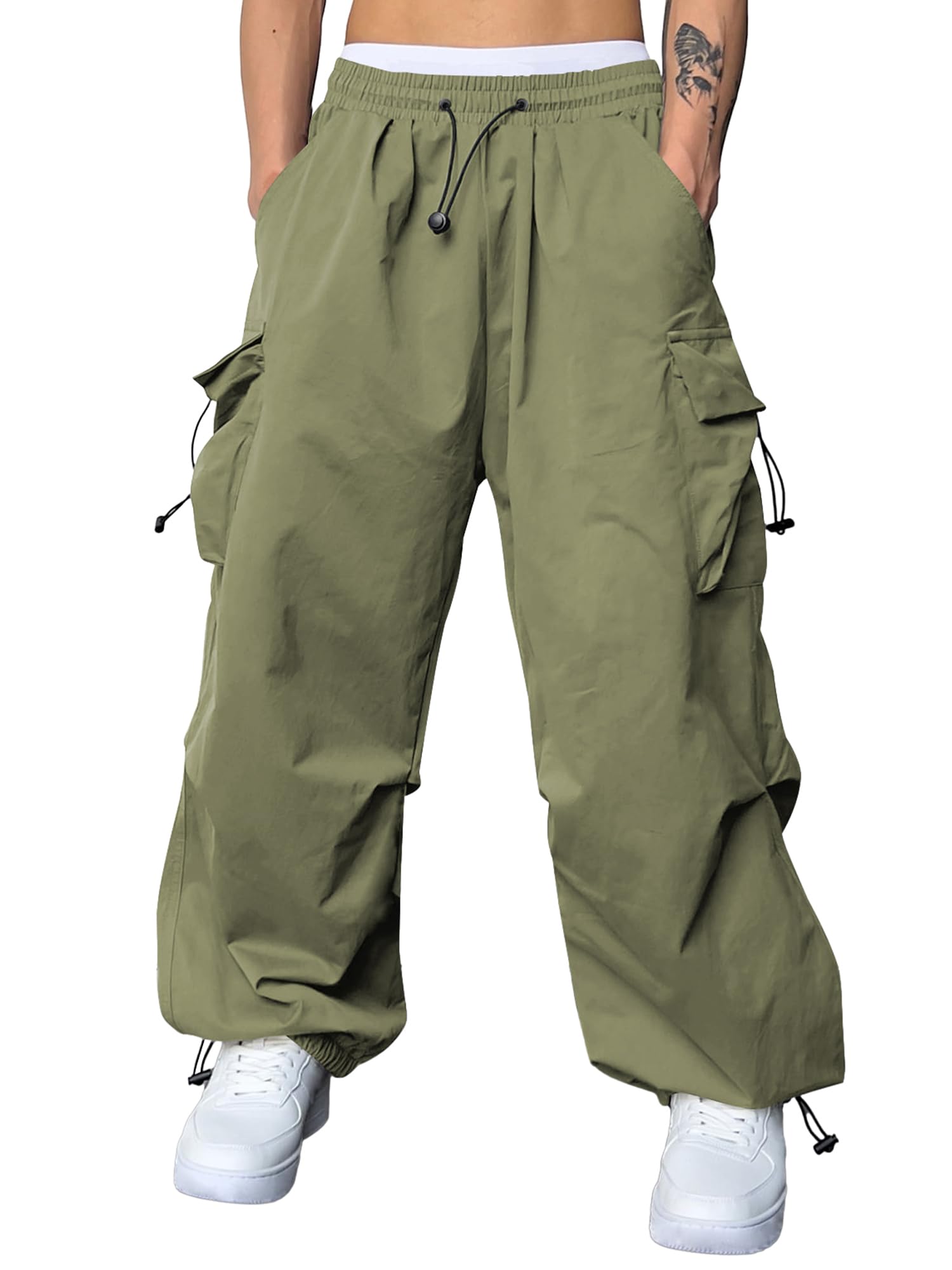 Trendy Design: JMIERR's men's cargo pants blend parachute pants design with a wide flare leg, reminiscent of 90s hippie grunge style. Featuring a unique and bold look, these pants include an elastic waistband, adjustable drawstrings, and 4 pockets, making them a super chic addition to any stylish men's wardrobe.