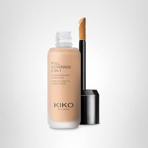 DESCRIPTION: 2 in 1 foundation and concealer with superior coverage. The innovative dual-action formula - foundation and concealer - is finally part of the KIKO range! Full Coverage 2-IN-1 Foundation and Concealer works on the skin by hiding and minimising all blemishes (under eye circles, discolouration, fine lines etc.) and leaving a second skin-effect veil on the face, with a matte satin finish, ideal as the base for all types of makeup. Skin remains smooth and flawless all day. The creamy super-fluid texture provides a feeling of comfort upon application, ensuring extremely easy coverage and optimum blendability. Thanks to the even distribution of pigments within the formula, the superior coverage means an extraordinary buildable result can be achieved, also thanks to the perfect adherence and excellent colour release. The applicator was designed to perform both functions of Full Coverage 2-IN-1 Foundation and Concealer: the rounded tip is perfect for little touch-ups and to minimise blemishes to be concealed, while it is possible to apply and blend foundation with the flat part, for full coverage in just a few gestures. Ideal for normal to oily skin. Available in many shades for all skin tones. Dermatologically and ophthalmologically tested. RESULTS: The face is flawless and blemishes disappear, skin is even and smoothened, with a long-lasting matte satin finish. ADVICE: Simply apply a small amount of product for a smoothened, full coverage result. PAO: 12 Made In: IT