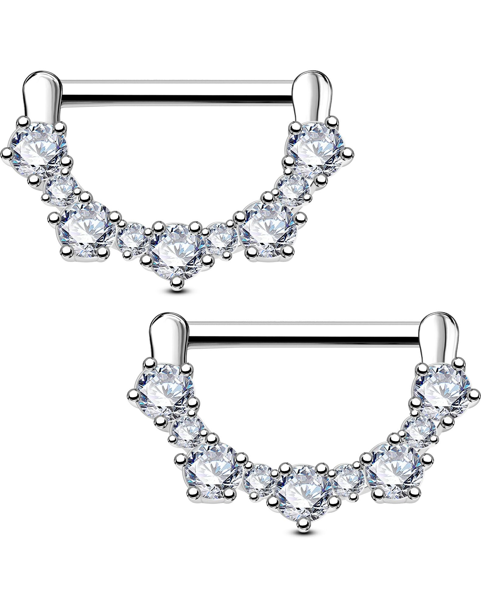 Attractive Style: The nipple ring with shiny CZ&Opal on both side,what's more it's internally threaded design,make your nipple piercing more attractive