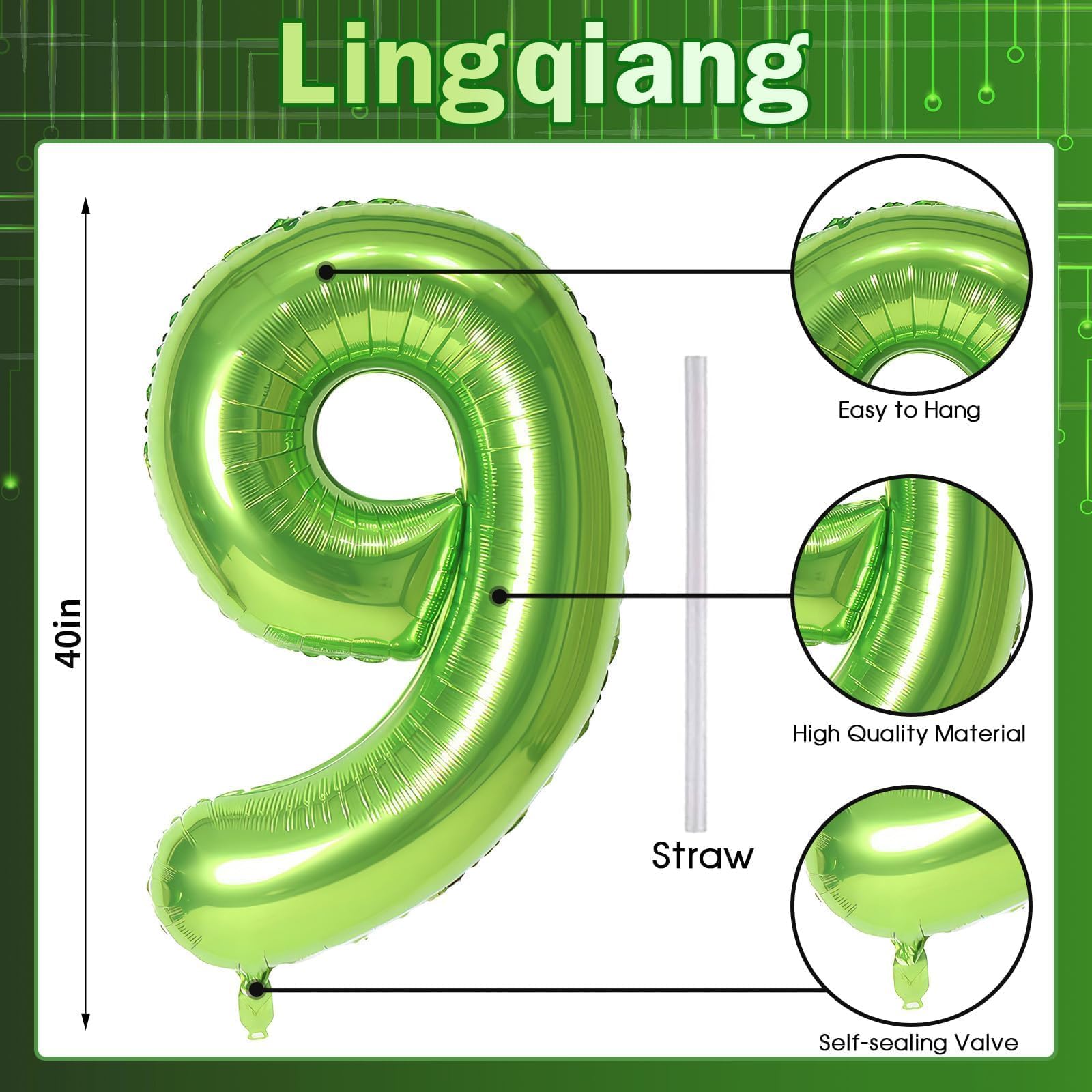 🎉 Green Number 9 Balloon 🎉 - You will get 1pc 40 inch mylar foil number 9 balloon and 1pc straw. Perfect for 9th 19th 90th birthday or anniversary party decorations supplies.