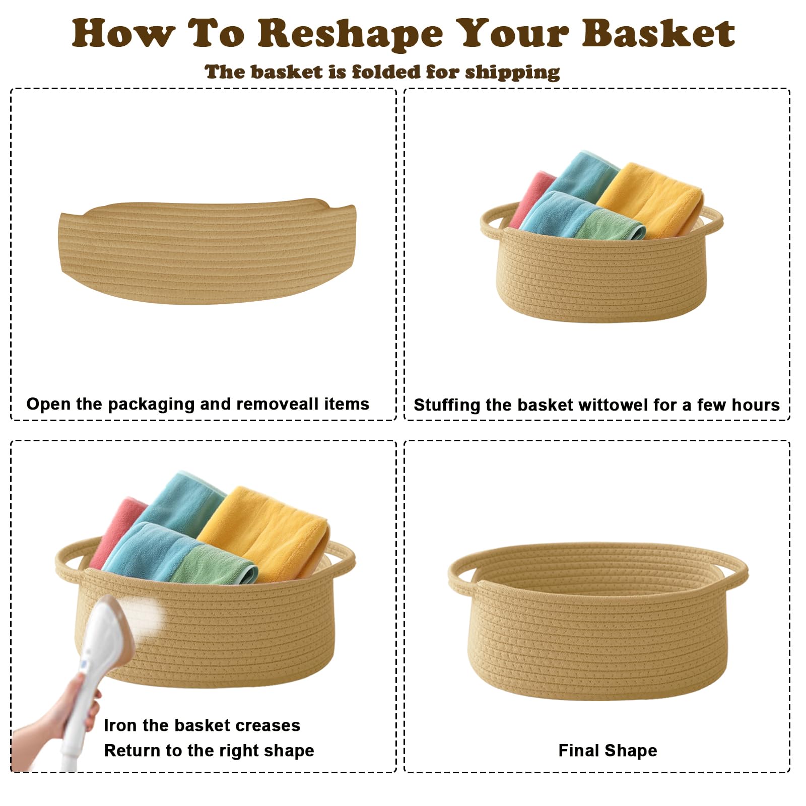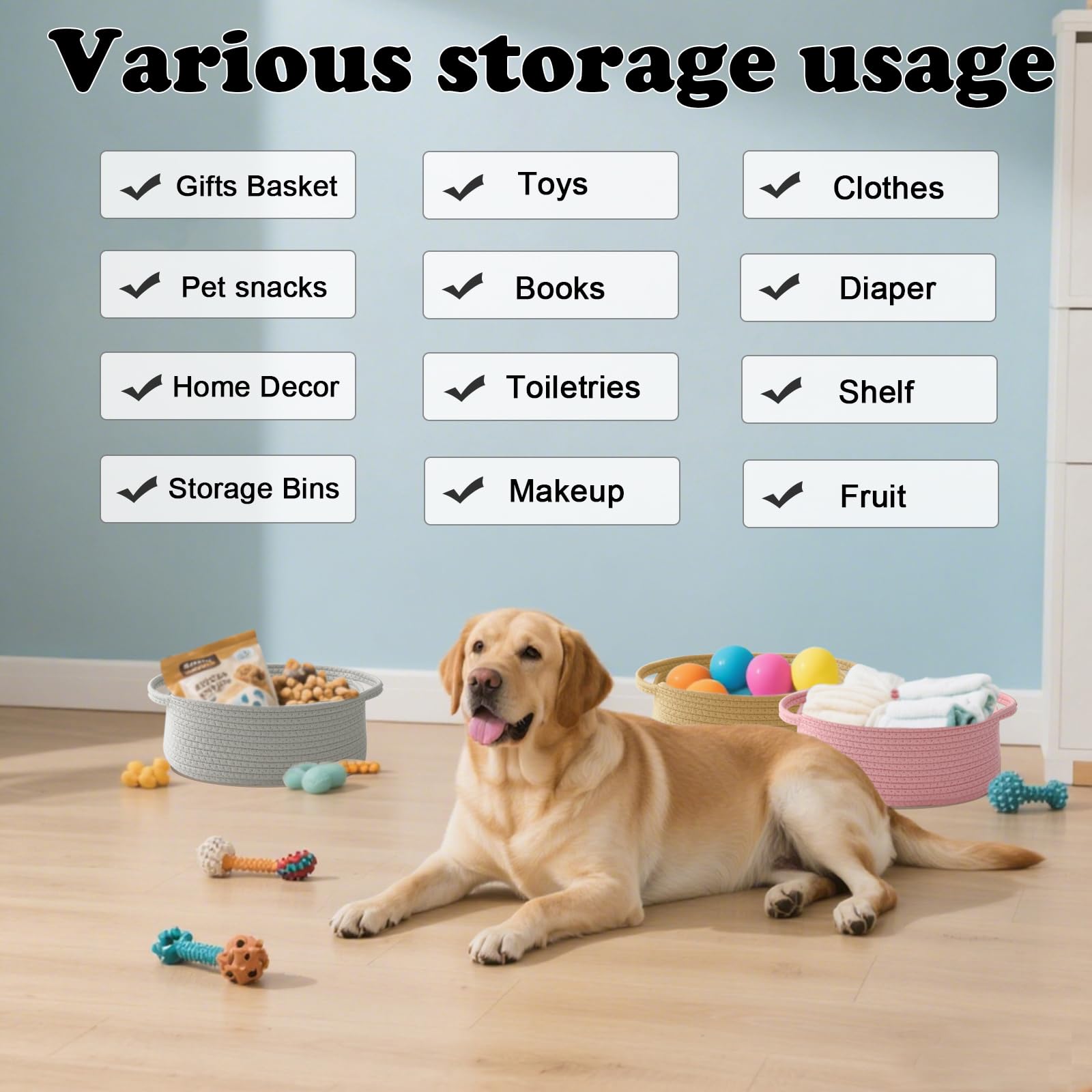 【Multi-Purpose Storage】Woven baskets for storage,bathroom organization, shelf styling,storage basket for organizing snacks, dog cat, magazine, shoes, remotes, books, towels, toiletries, keys and more.Widely used in living room,bedrooms,bathrooms,kids room,and Kitchen
