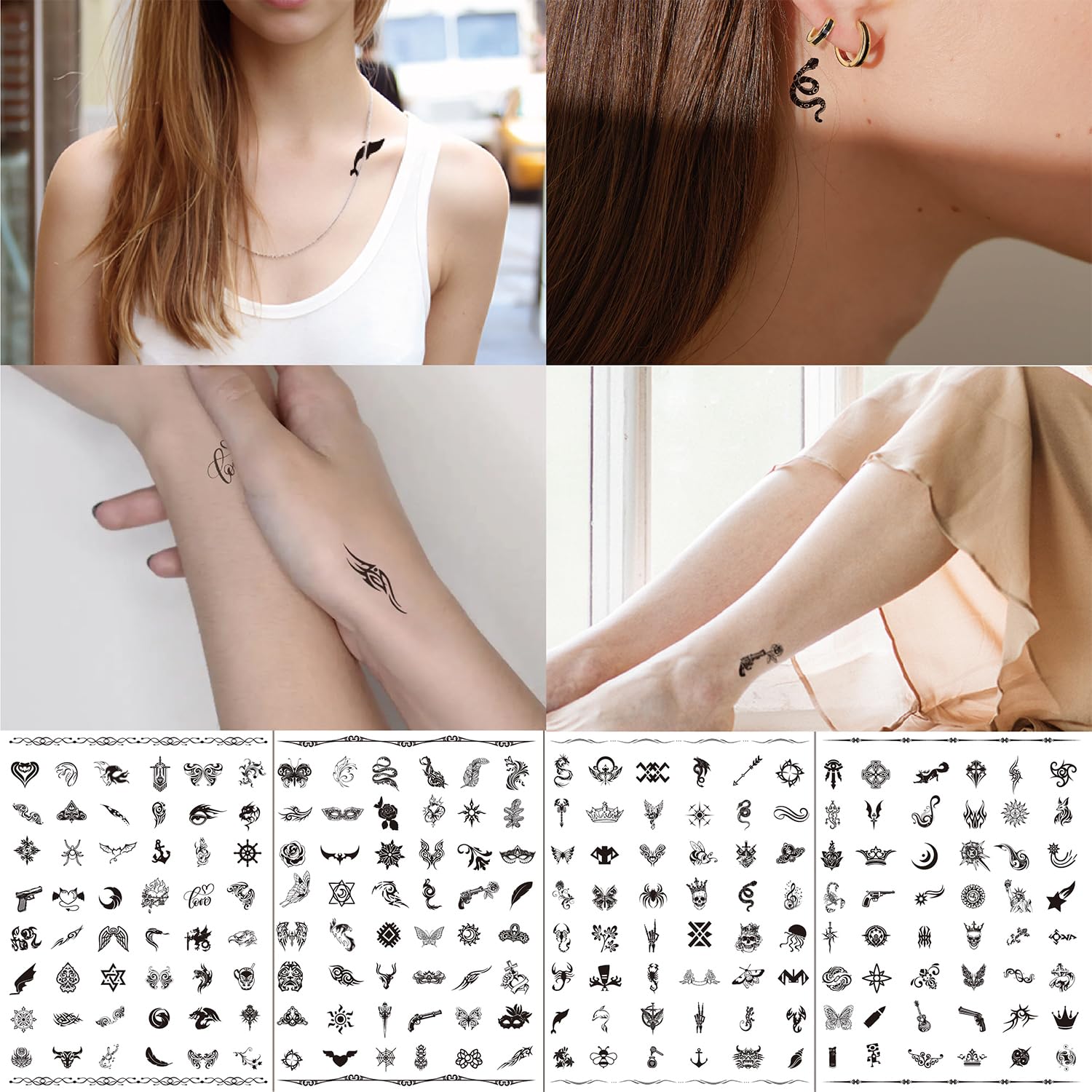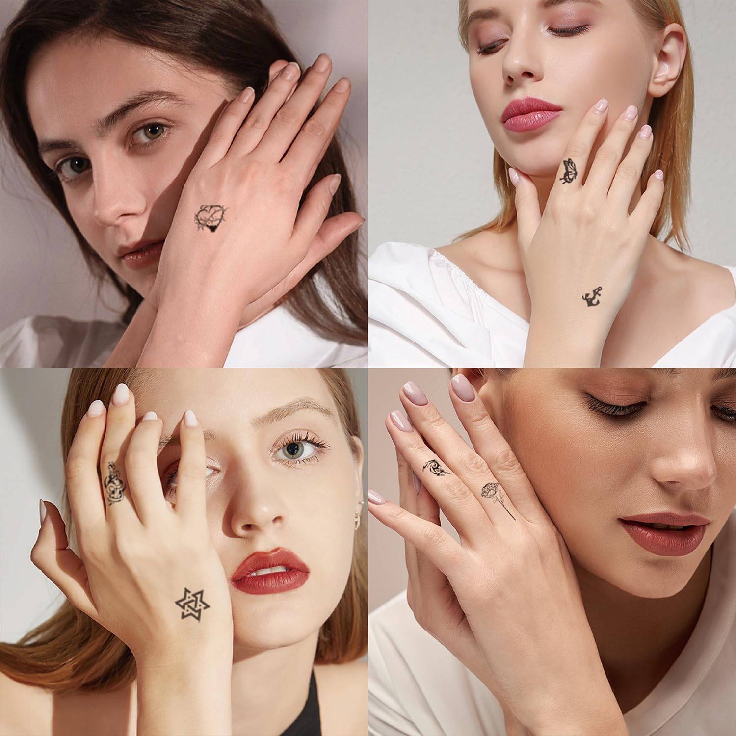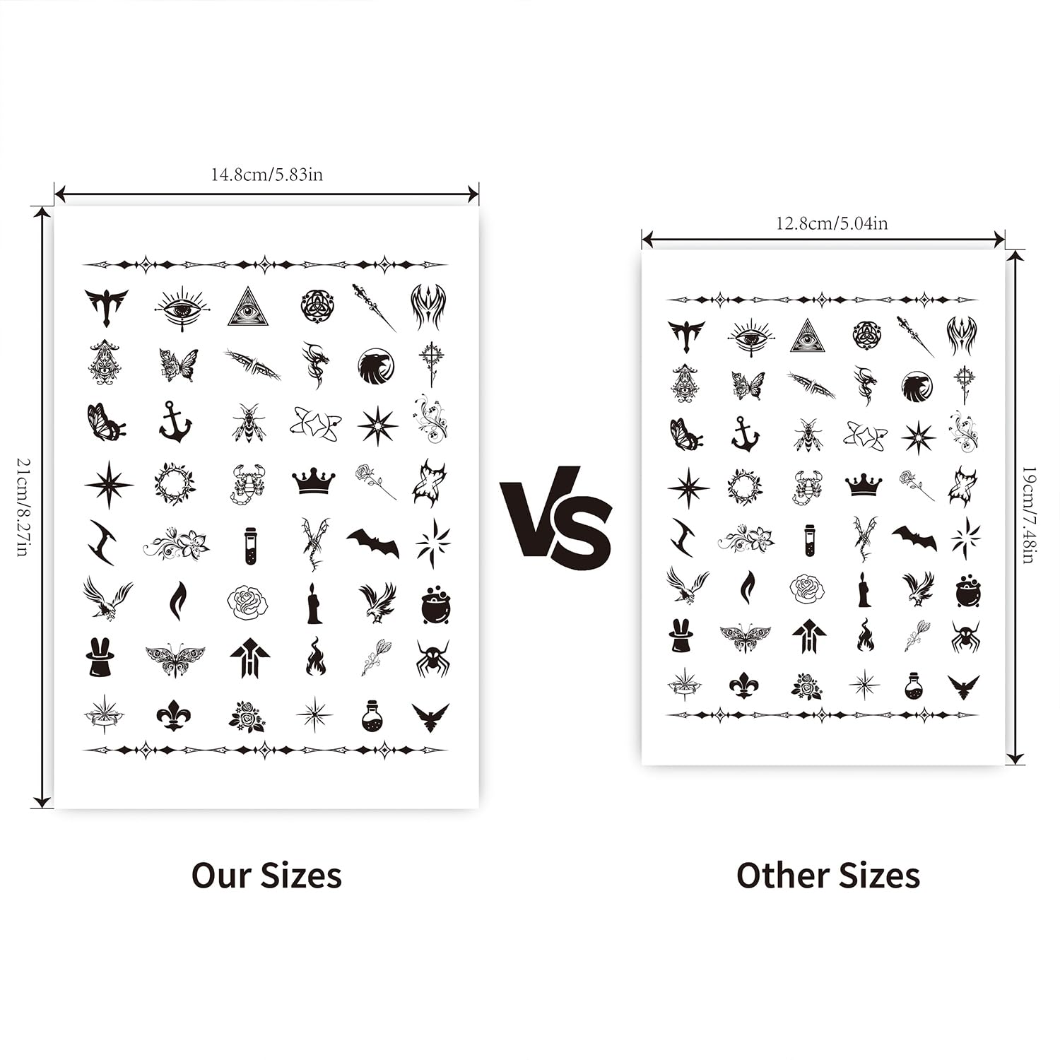 🌟 380+ Unique Small Temporary Tattoos for Adults & Kids: This set includes 8 sheets, each with 48 different patterns, offering a total of 380+ realistic fake tattoos. From finger tattoos for women to temporary neck tattoos, these black temporary tattoos are perfect for temporary tattoos adult women, men, and kids, ensuring there's something for everyone, no matter the occasion.