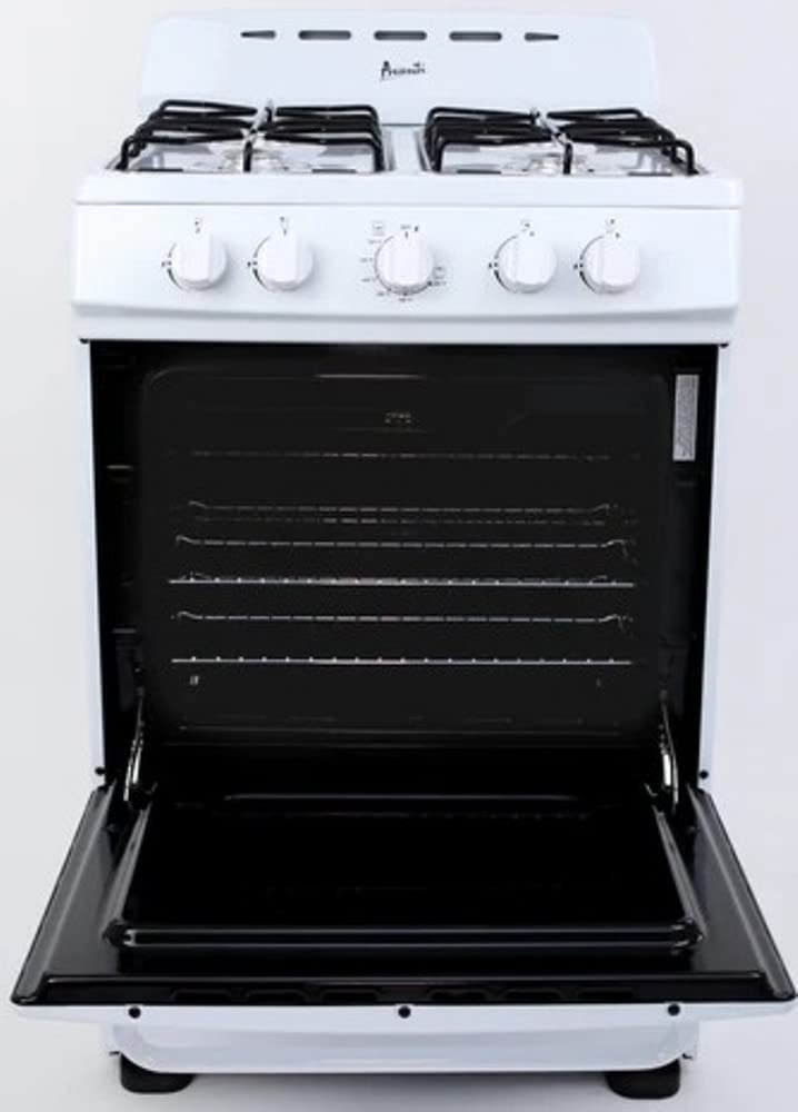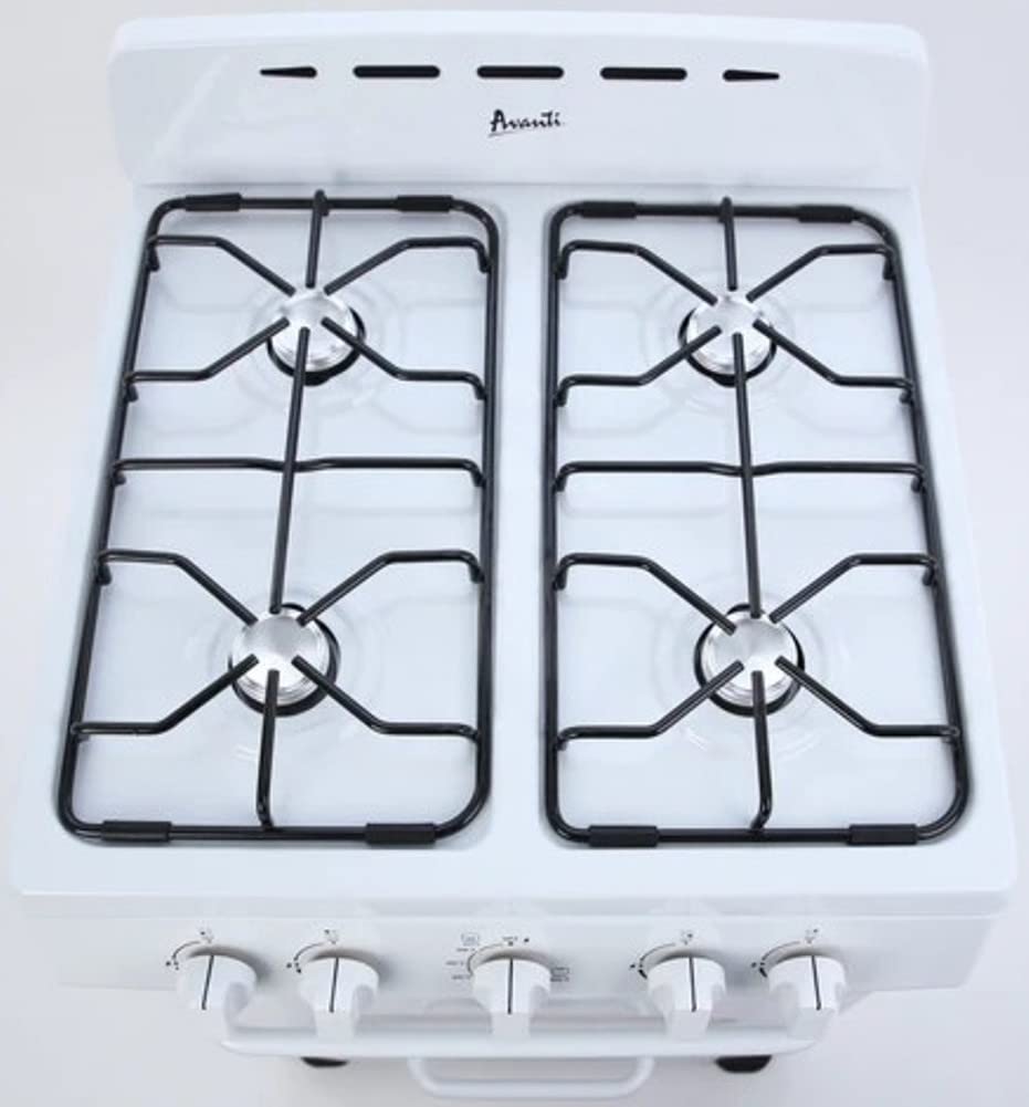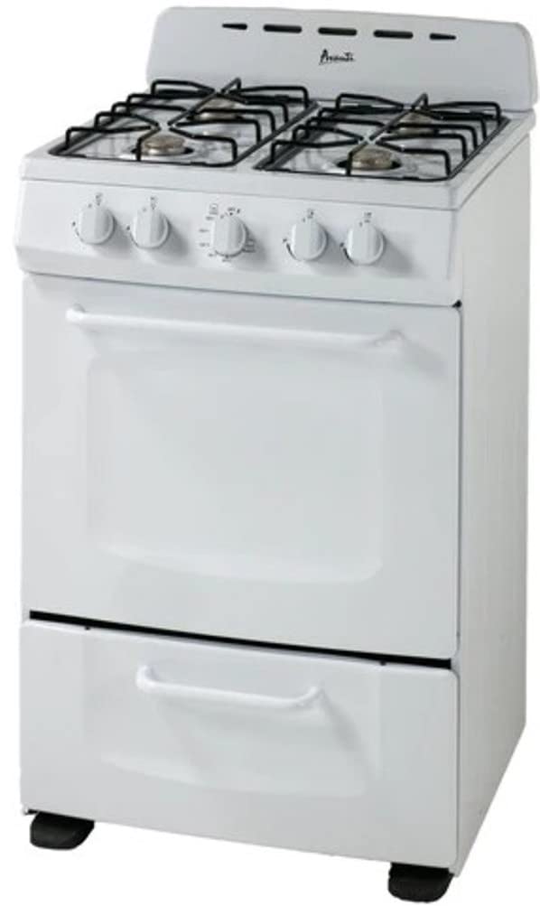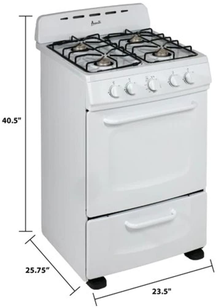 Save space without sacrificing performance with the Avanti GRO24P0W 24-Inch Freestanding Gas Range. Ideal for apartments, condos, RVs, tiny homes, and vacation properties, this compact gas range fits seamlessly into small kitchens while delivering full-size cooking capabilities. Equipped with four sealed 9,000 BTU burners and automatic electronic ignition, the cooktop offers easy, reliable startup and efficient flame control for everyday cooking. The 2.6 cu. ft. oven includes two adjustable racks, while the lower broiler drawer (10,000 BTU) adds versatility for grilling and crisping. A built-in storage drawer keeps your kitchen organized and essentials within reach. The Avanti GRO24P0W also features five push-and-turn control knobs, a 60-minute timer, and an integrated backsplash with oven vents for improved air circulation. For added flexibility, it comes with an LP conversion kit, meets ADA compliance standards, and is backed by a 1-Year Manufacturer Limited Warranty.