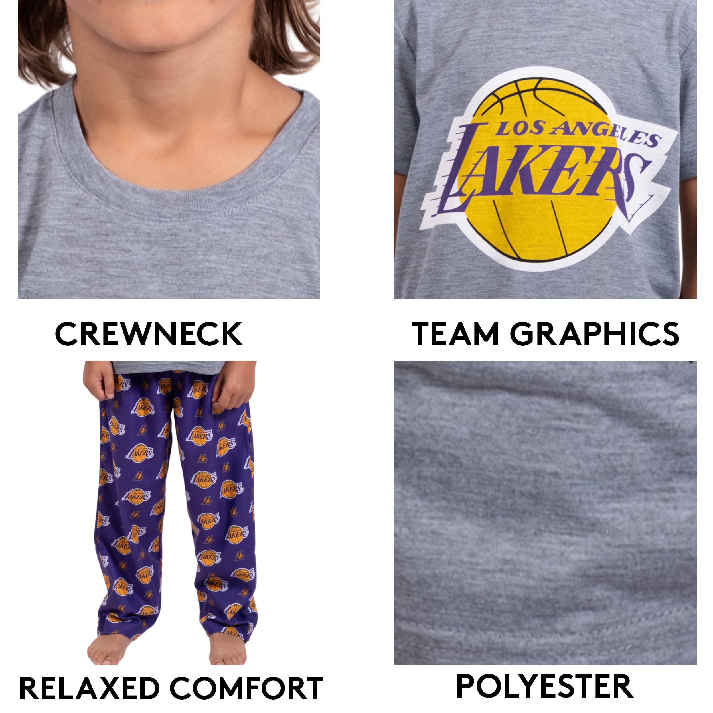 TEAM PRIDE: kids can show their NBA team pride from top to bottom with this set. The bottoms have an all-over print with the team's primary and secondary logos. The top has one large screen print of the primary logo across the front.