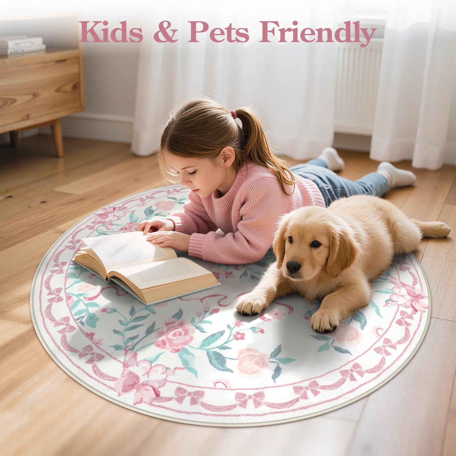 Cozy & Low Pile: Our elegant floral rugs are made of high-density, low-pile faux wool material and have a soft-touch surface that kids and pets will love to lay on, making them pet-friendly, and the low-pile design won't interfere with door opening