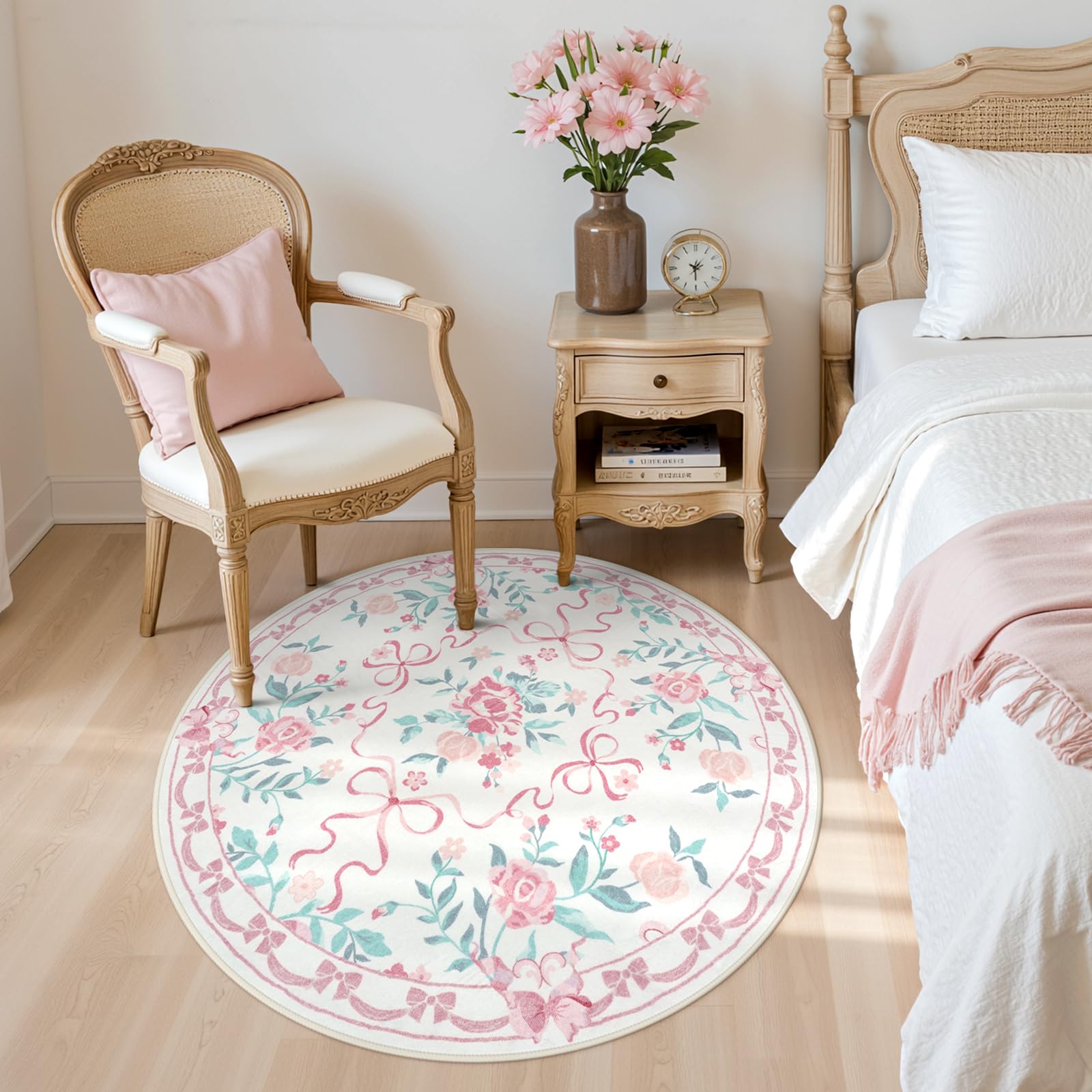 Vibrant Design: This lovely and beautiful rug is designed with a blend of bow ribbons and floral plants, combined with elegant color tones, it is a great fit for your home, giving your interior space a vibrant and elegant natural style charm