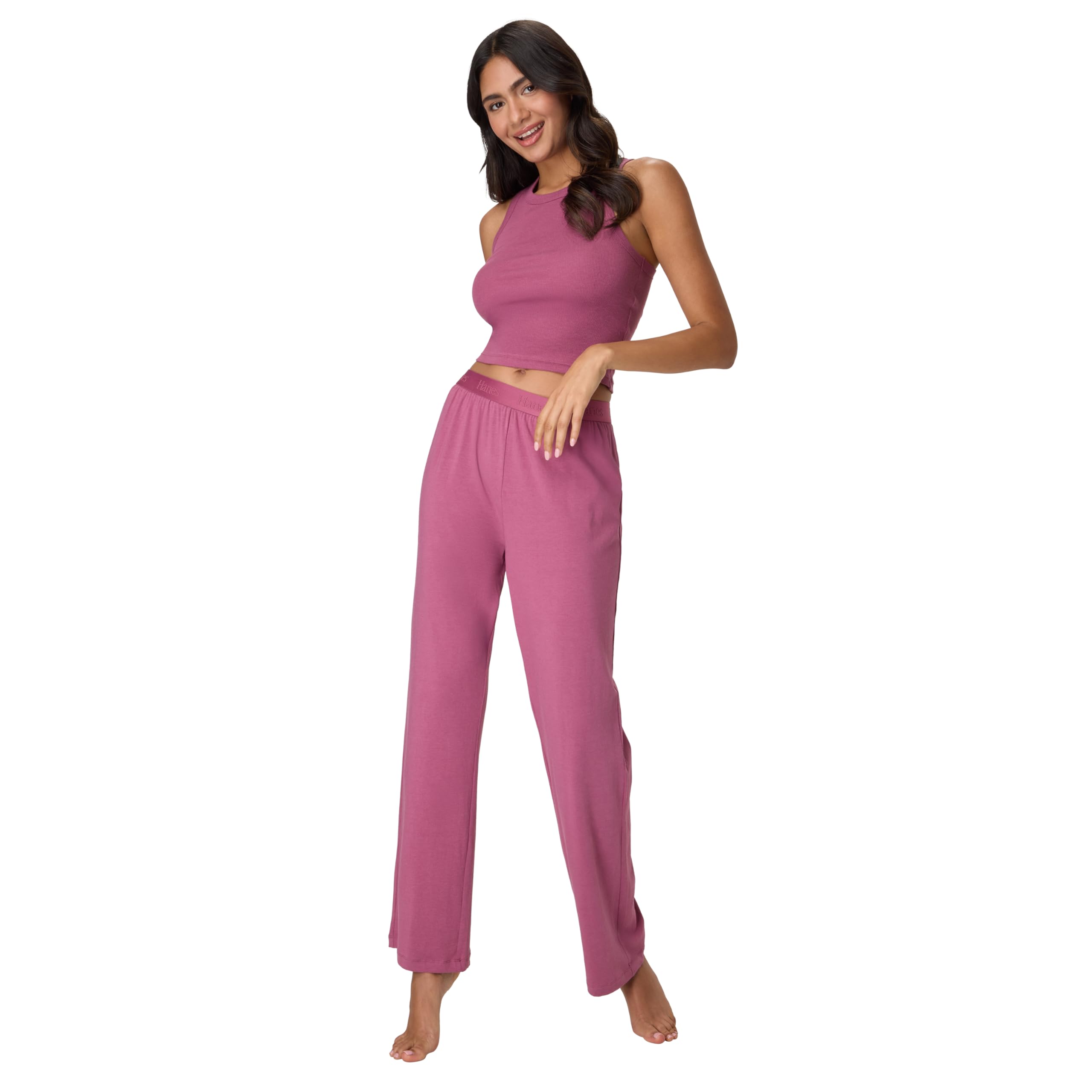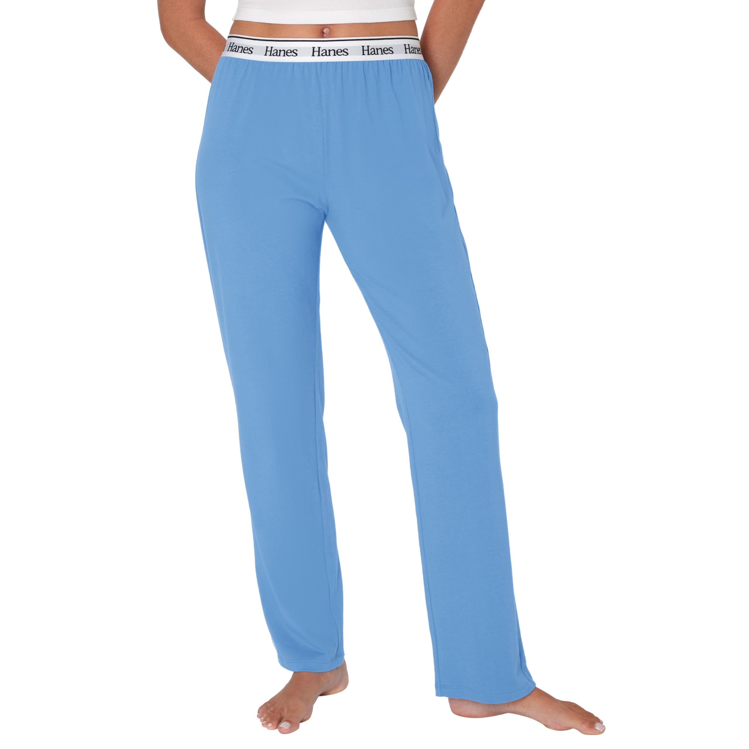 IT'S ALL IN THE DETAILS - Loungewear featuring a tonal Hanes soft-stretch elastic waistband and mid-rise, straight-leg fit allows for easy movement.
