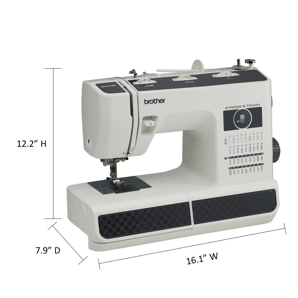 The Brother ST371HD is a perfectly designed heavy duty sewing machine for those requiring flexibility and durability. This strong and durable sewing machine is a perfect machine for everyday sewing and mending on everything from thick outdoor fabrics to lightweight and elegant silks. The ST371HD includes a metal needle plate for smoother fabric feeding and heavyweight needles. The 37 utility and decorative stitches for blind hems, stretch stitches, buttonholes, zipper insertion, and more gives this exceptional sewing machine even more value. The Brother ST371HD comes complete with 6 sewing feet, including a spring action zigzag foot and nonstick, blind stitch, zipper, buttonhole, and button sewing feet. Additionally, the drop feed feature allows you to complete free-motion sewing with ease. This heavy-duty sewing machine also has a built-in easy needle threader, a jam-resistant Quick-Set drop-in top bobbin, an automatic bobbin winding system, and a free arm for sewing cuffs, sleeves and jeans. Storage is made easy with a built-in handle that allows the Brother ST371HD to go from sewing table to storage quickly. Operating at a maximum sewing speed of 800 stitches per minute, the Brother ST371HD can quickly yet efficiently complete sewing projects without compromising quality. This sewing machine also includes an instructional DVD to help you get started and an English and Spanish user’s manual. This product is also backed by a 25-year limited warranty with support for the life of the product.