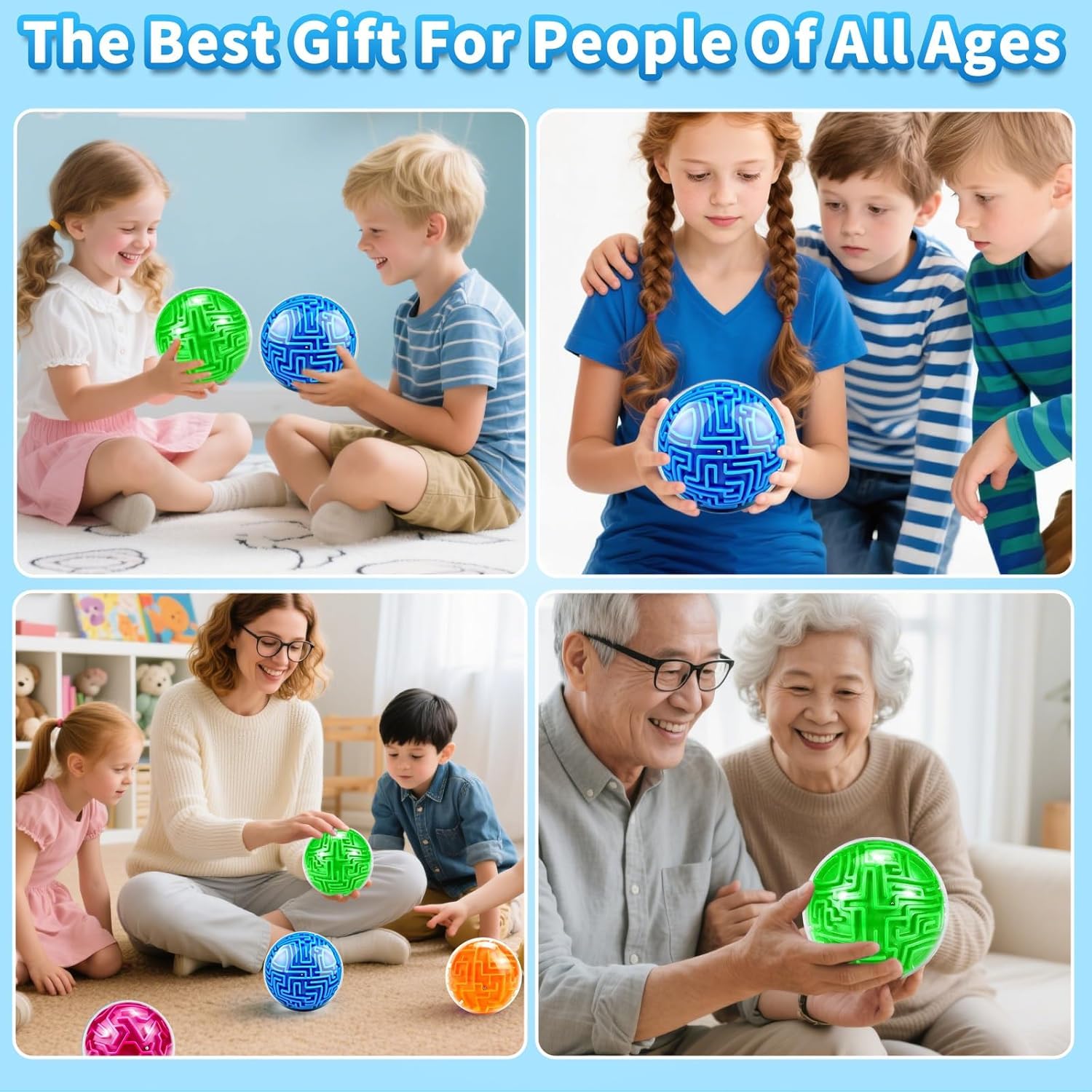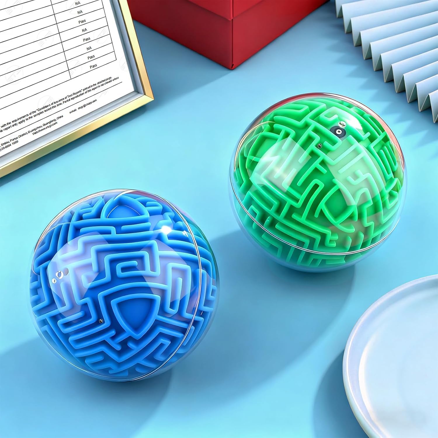 PREMIUM QUALITY:Our Maze balls are made of clear ABS on the outside, durable and impact resistant, and soft plastic on the inside. The maze balls of each color are about 10 cm / 4 inches in diameter, lightweight and compact, comfortable to hold and easy to carry, so you can enjoy this maze brain teaser game anytime, anywhere, providing hours of play even on short trips entertainment. Great Christmas and Birthday gift for kids, friends, family members, beginners