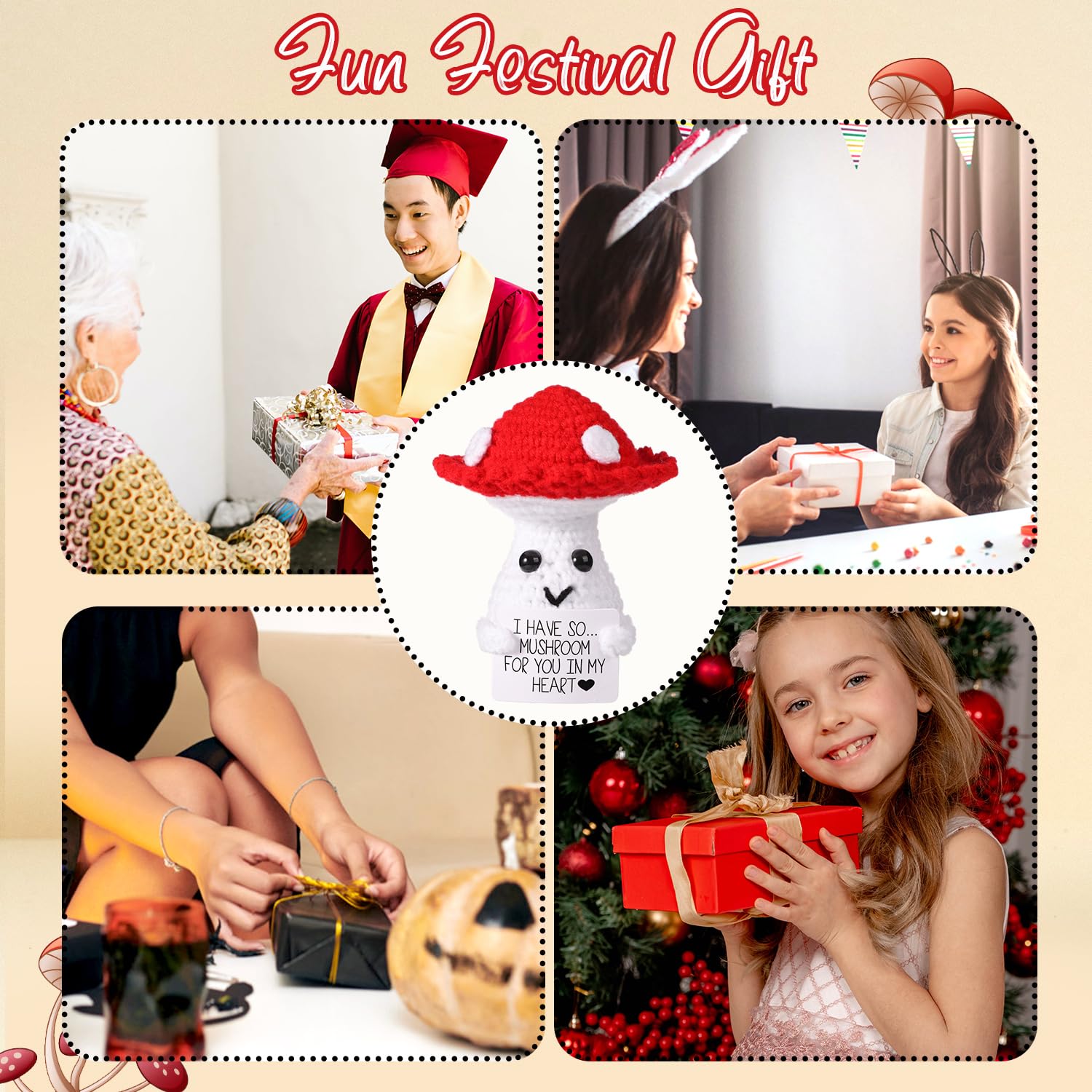 Nice Gift: The knitted mushroom doll comes with an encouragement card, a warm reminder to be positive and brings encouragement to the people you care about. Can be a nice gift to your girlfriend, boyfriend, husband, wife, family, kids and friends on birthdays, anniversaries, Valentine's Day, Mother's Day, Father's Day, parties, festivals and more.