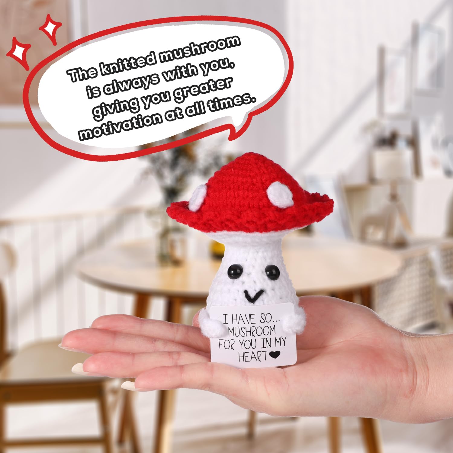 Positive Encouragement: Our knitted wool mushroom doll is so cute and features motivational words on the card. You will feel relax and happy when you see them after coming home from a hard day's work.