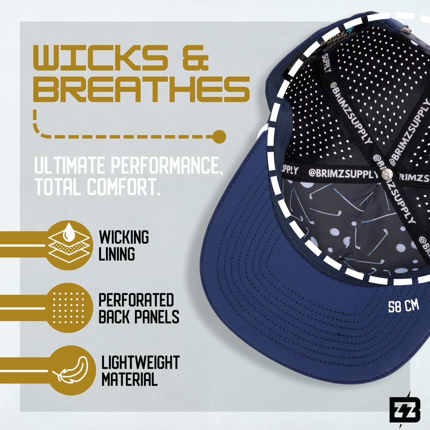 PERFORMANCE WEAR: Complete your golf gear with hats designed for a stylish look yet functional hat. Sweat and water resistant, with breathable material for cooling and a tough lightweight design make BRIMZ the ultimate outdoor performance hat.