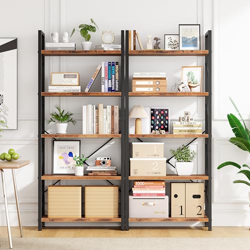 High-Quality Metal Frame Bookcase:Constructed by premium metal and selected particle board, the contemporary metal bookcase is solid, stable, sturdy, and durable. With top notch anti-rust coating, the whole shelf looks more sophisticated. With an excellent metal frame and thick solid panel, each panel of the bookcase can hold up to 40 lbs. Because of the fixed rod assembly, the industrial shelf has strong stability and can perfectly protect your items. No shaking No wobbling.