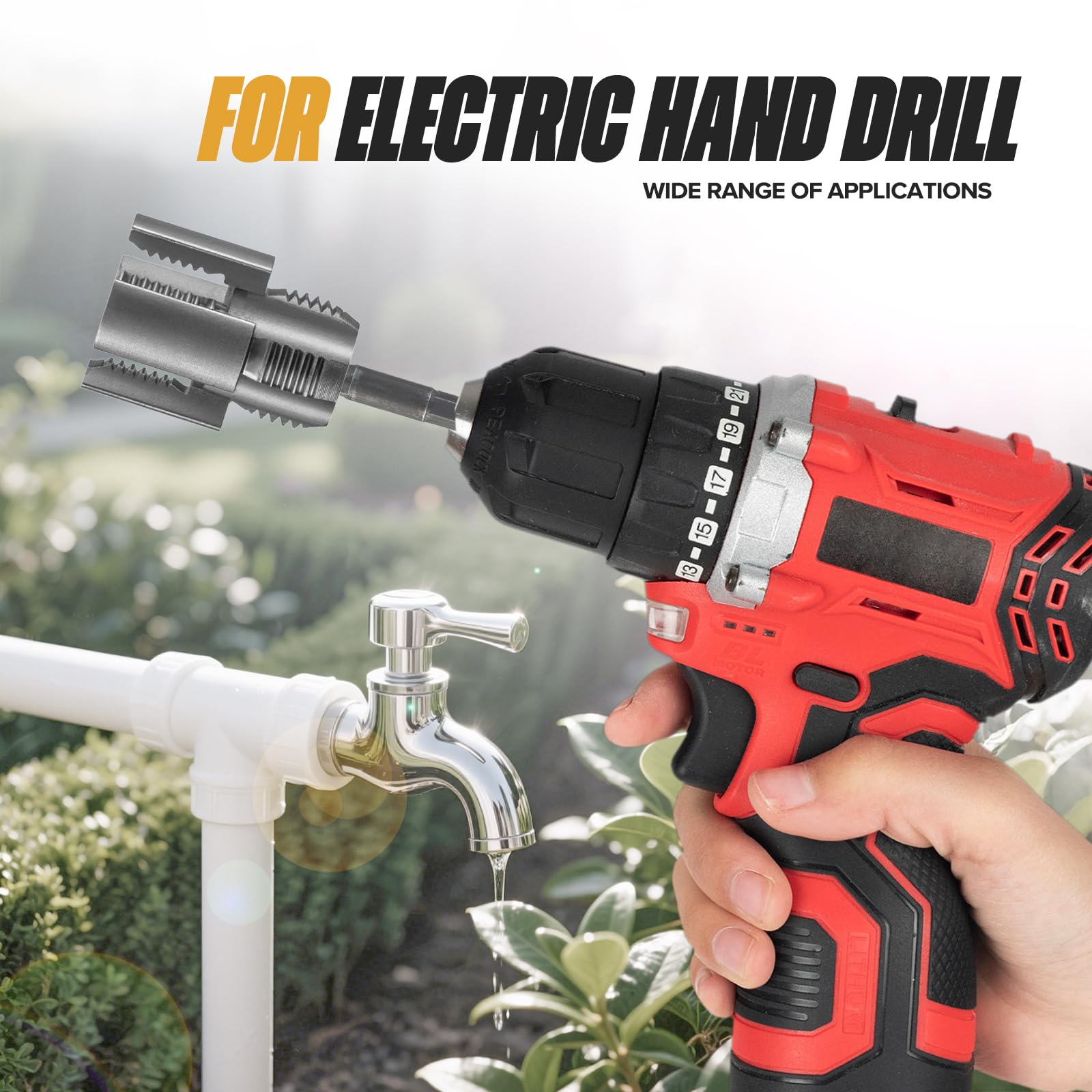 EFFICIENT QUICK-CHANGE DESIGN: Features a detachable head for fast switching between thread types (internal/external) and pipe sizes. Saves time and streamlines your workflow on any project. Pipe Threader for Drill: Simplify Your Plumbing Work