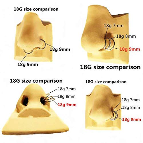Sold individually Nose Hoop Ring/Earring Hoop Size: 18 gauge (thickness: 1.0mm), inner diameter 5/16 inches(8mm),If your nose is big or your nose piercing is higher, please try to pick larger inner diameter.Please choose your gauge and diameter hoop for your nose piercing needs.It has a smooth closure that doesn't slipped or opened. It's still tight after long-term use.