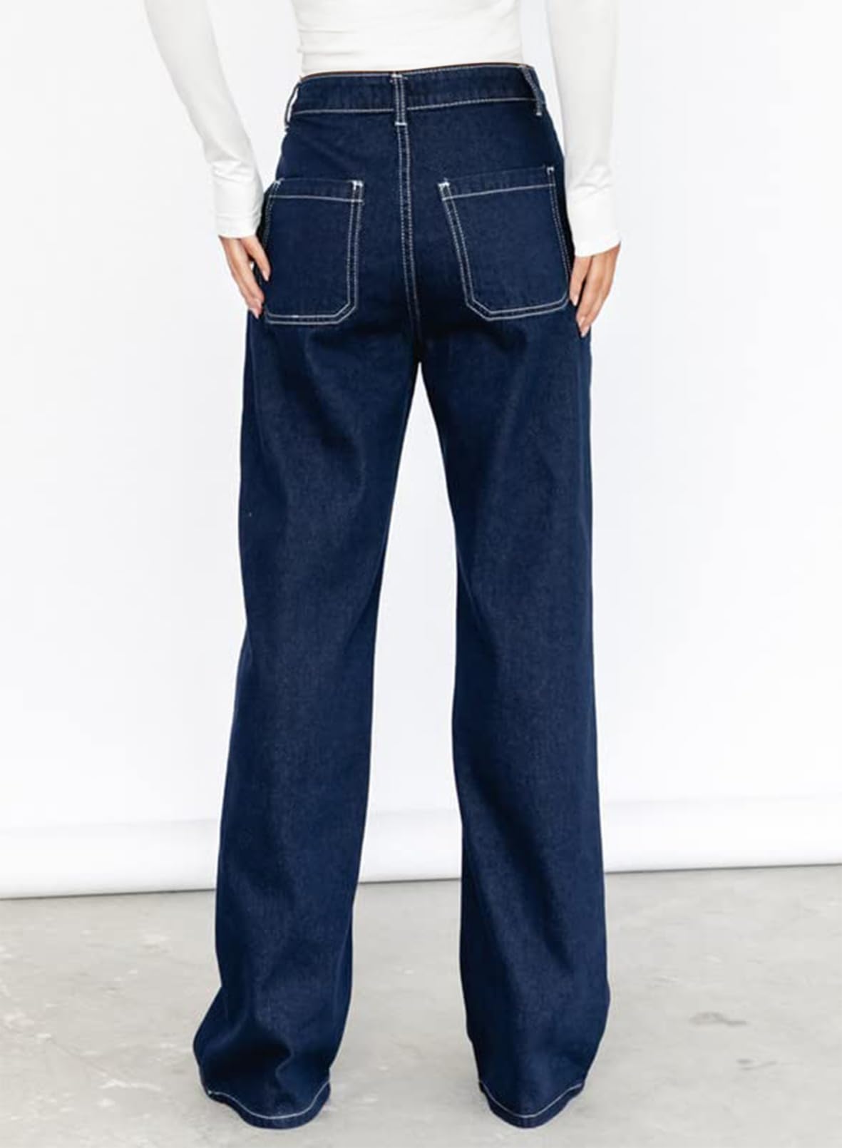 Feature: cargo jeans, mid waist, straight-leg jeans, button and zipper fly closure, straight wide leg style, four pockets, denim jeans for women.