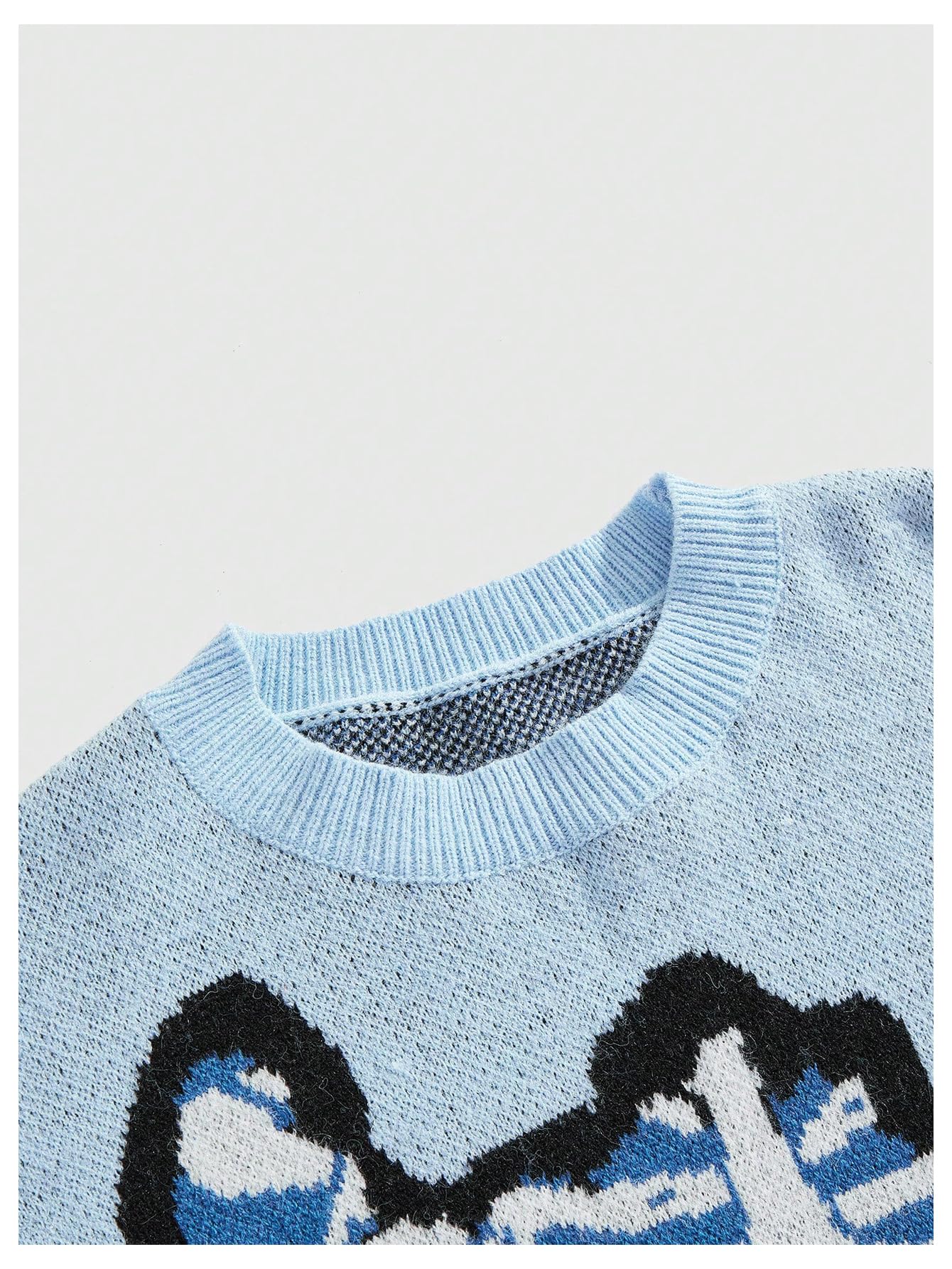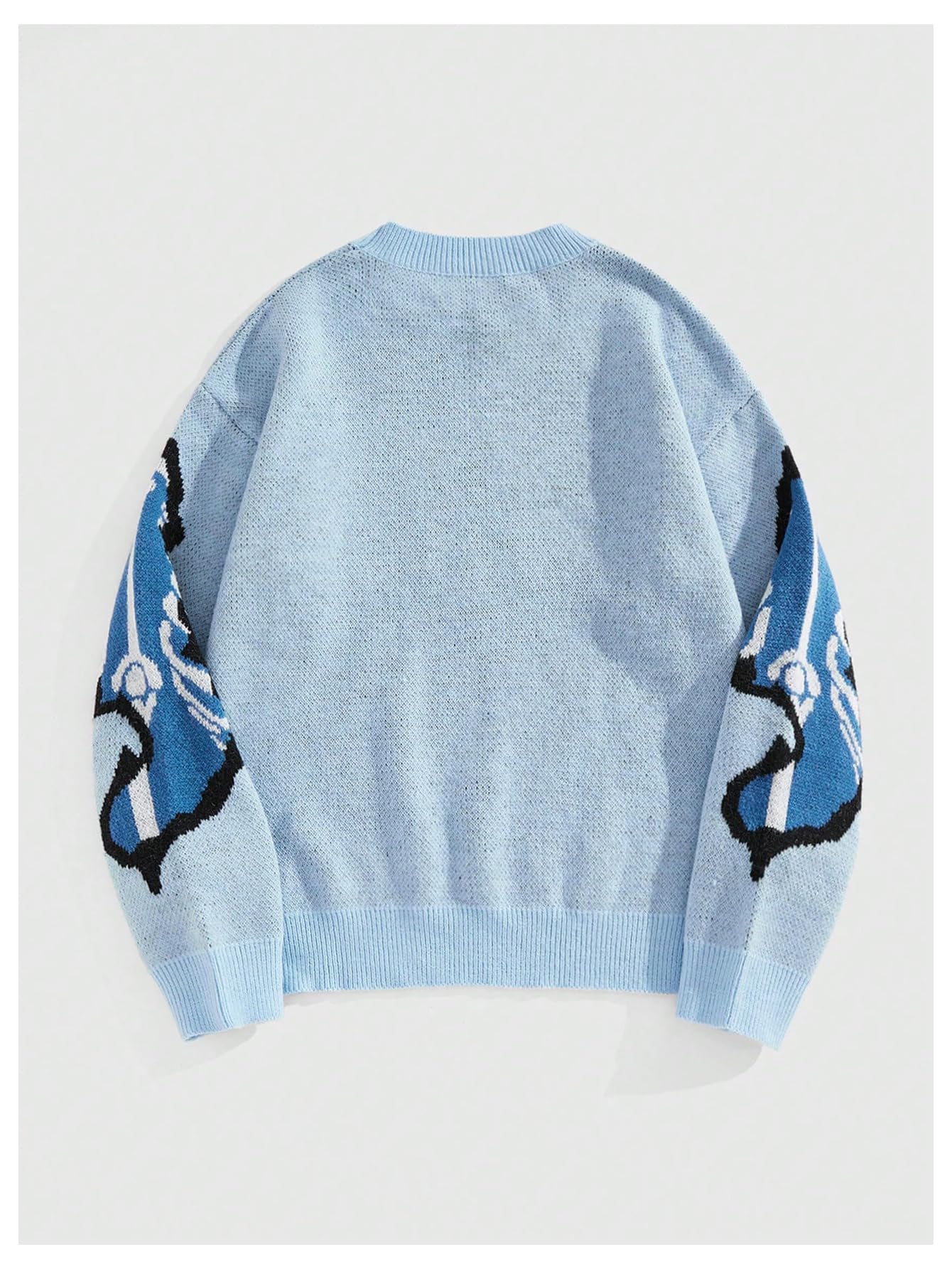 Feature: Round neck, long sleeve, drop shoulder, graphic print, pullovers, fashionable