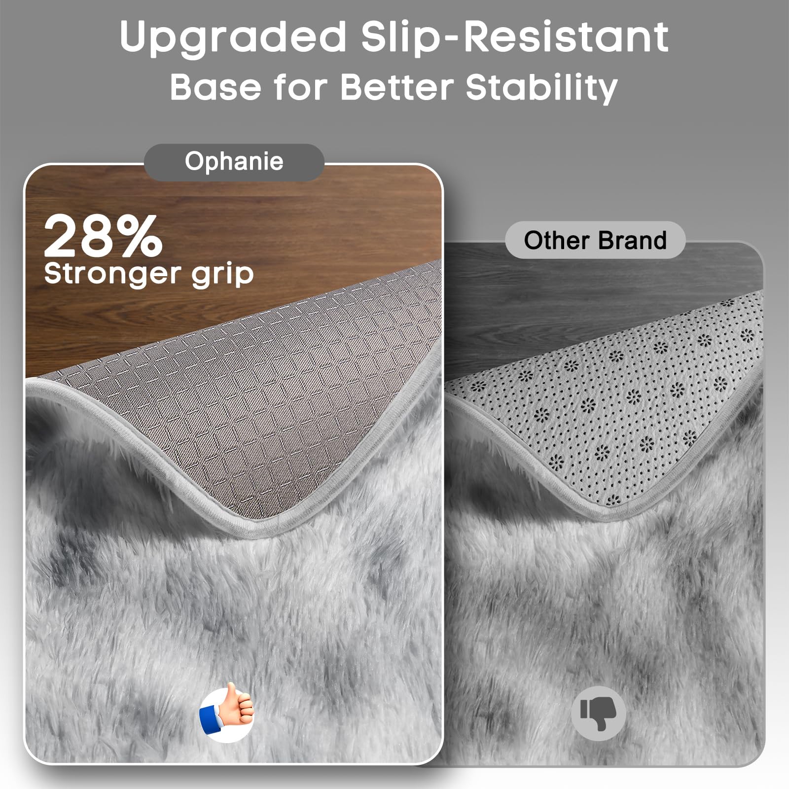 Ultra Soft & Non-slip: Featuring a shaggy carpet surface, the Ophanie soft area rug is highly soft with a high-density sponge interlayer. This rug effectively reduces shedding, and the non-slip bottom with small, durable anti-slip dots enhances friction to prevent sliding.