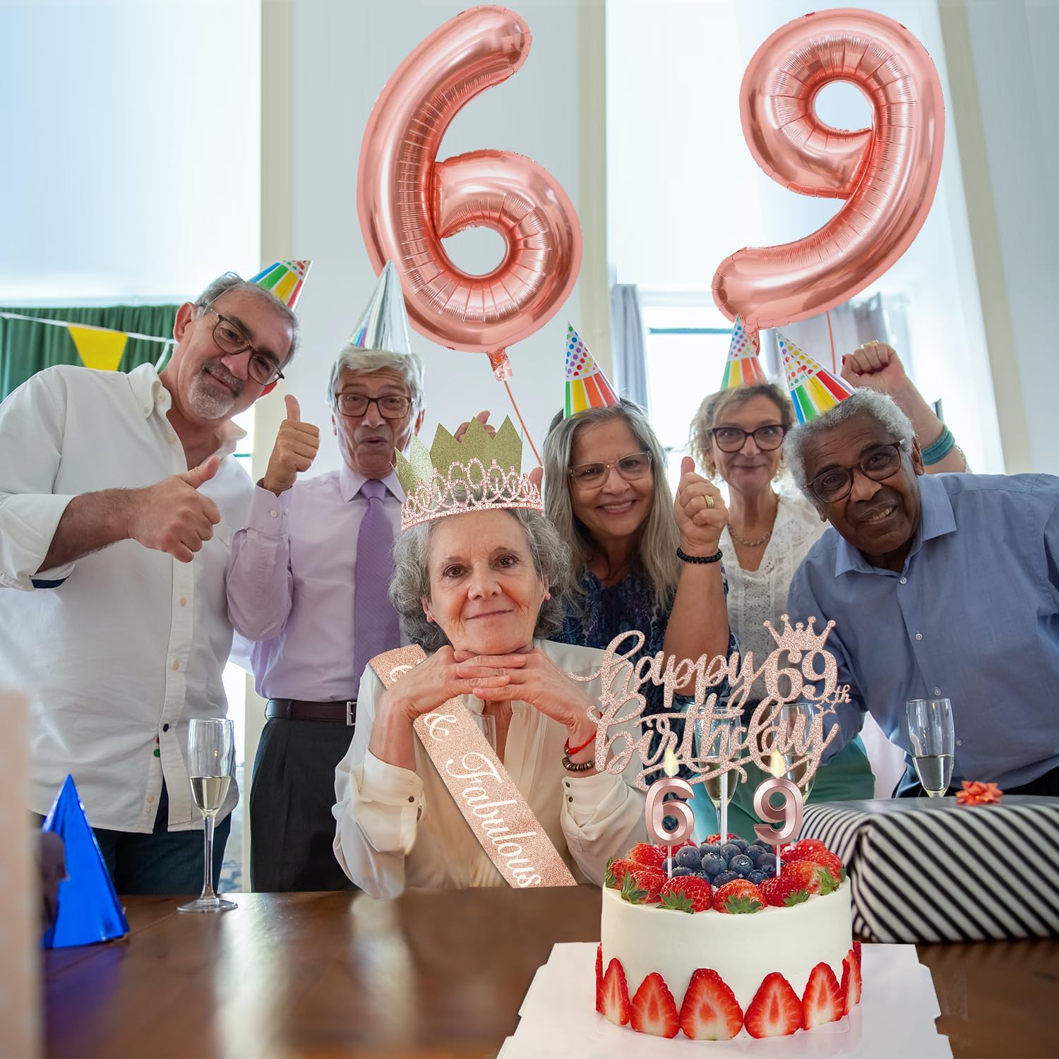 69th Birthday Cake Topper and 69 Candles: 2 pieces Numeral Candles in number 6 and 9 which are packaged in separate plastic boxes. A Rose Gold Happy 69th Birthday Cake Topper is a funny choice for your party cakes. These dreamy rose gold 69th Birthday Kit help to create a romantic and elegant 69 birthday celebration