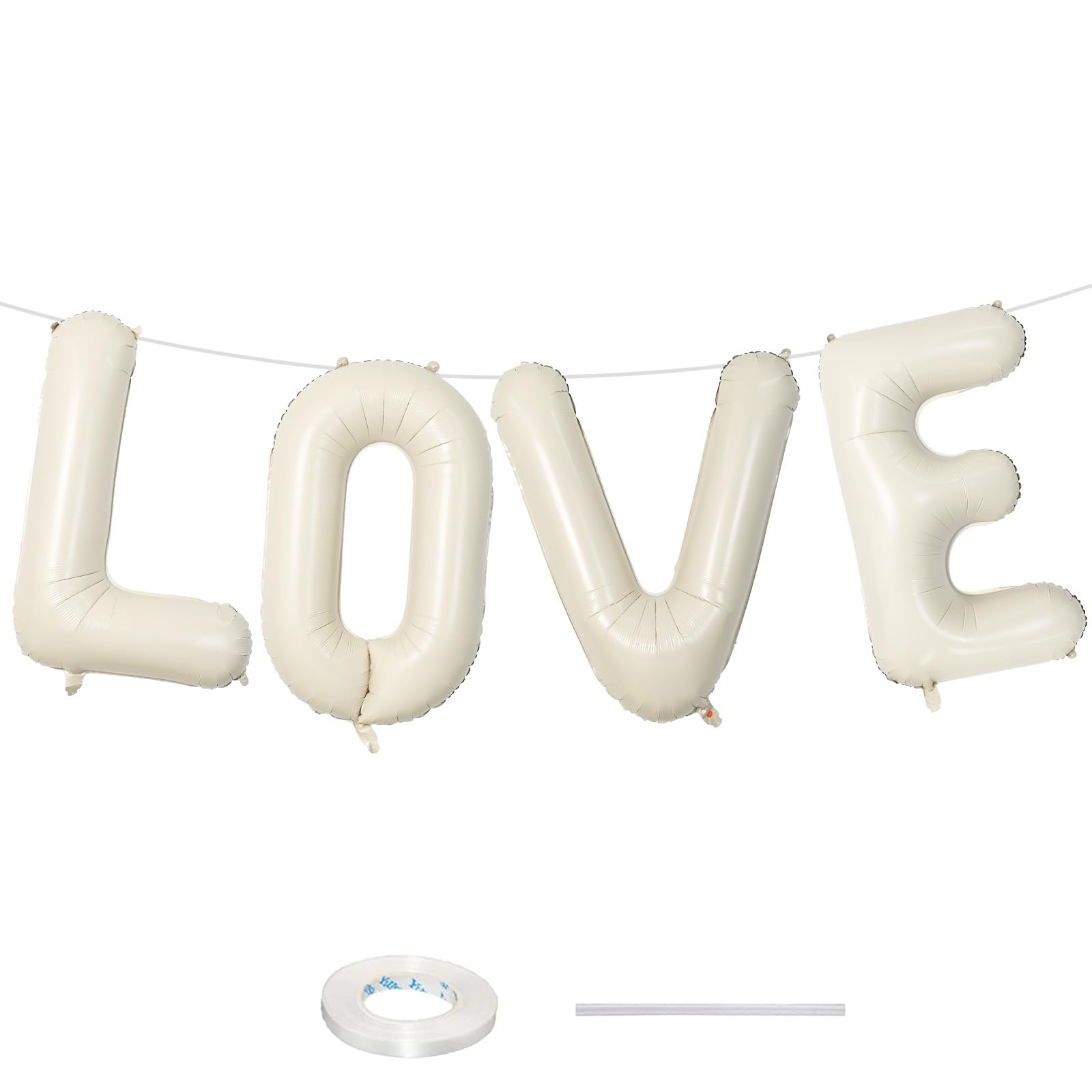 💕 LOVE Balloons for Gift 💕 You will get 4 pieces 40 inch large beige L + O + V + E foil letter balloons with 1pc balloon ribbon, perfect for valentines day wedding bridal shower anniversary engagement party decorations supplies.